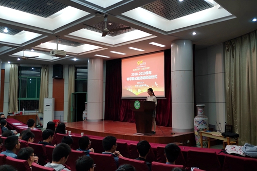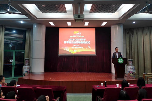 本网讯11月5日,我院在林学楼一楼报告厅举办2018-2019学年公益活动启动仪式。院团委老师、校勤管中心、院活动管理部工作人员及本学年受资助同学参加了启动仪式。