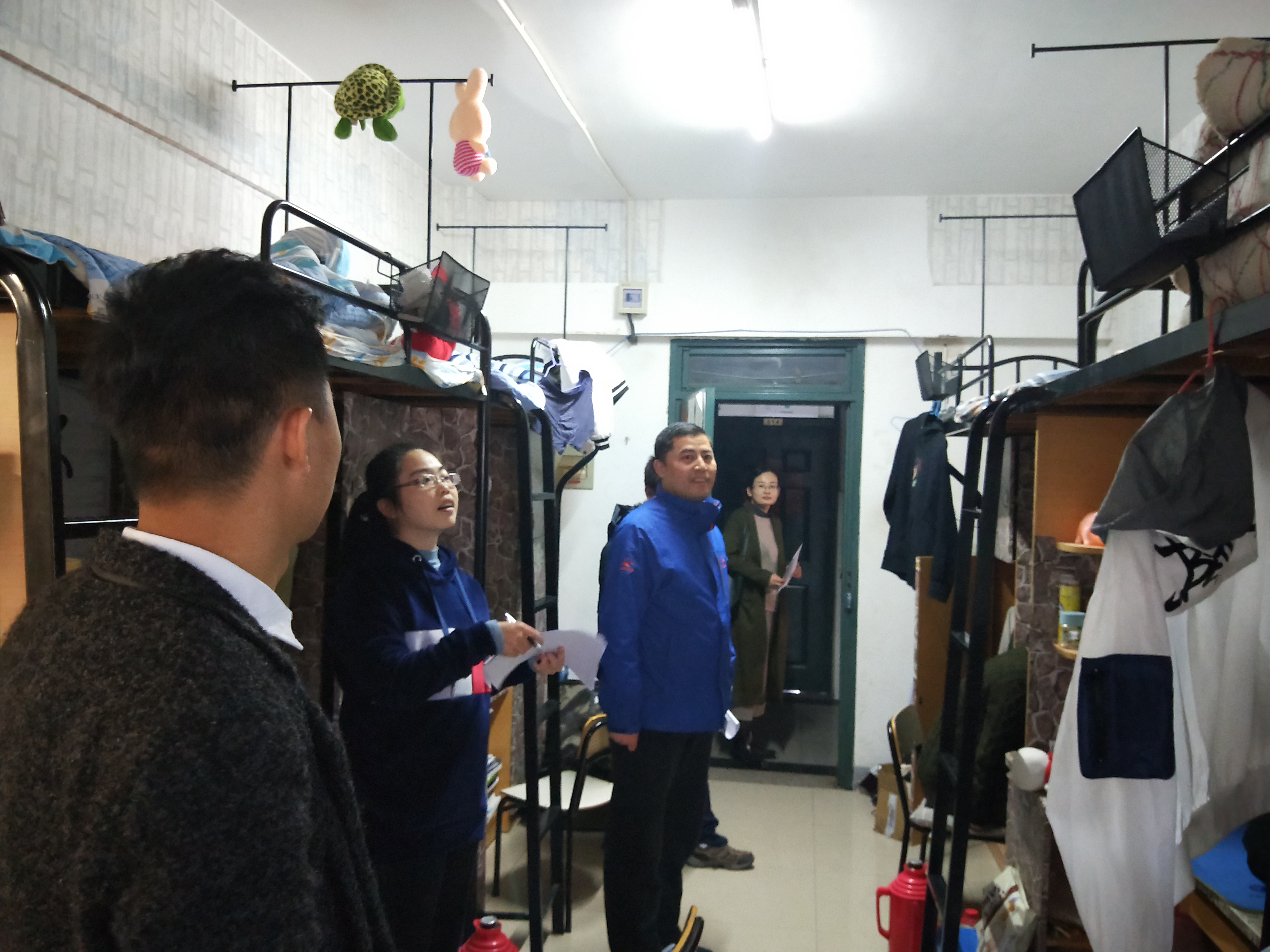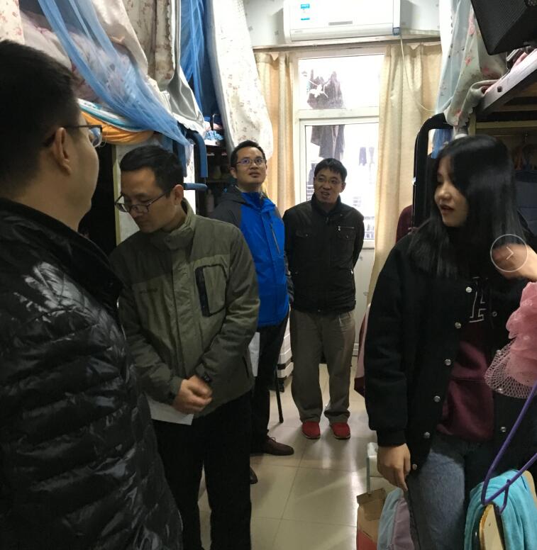 走访检查内容主要包括学生寝室卫生状况、安全用电、防火、防盗、防骗、外宿情况等。在学生宿舍,检查组一行重点强调了用电安全,财产安全,提醒同学们注意保持个人、宿舍卫生,同时还询问了同学们在学习和生活中遇到的各种困难和问题。在毕业班宿舍走访中,重点就考研和就业方面进行了细致的解答和交流。在低年级学生宿舍,重点就良好生活习惯养成,寝室成员之间和谐相处,创建文明宿舍文化等方面进行了强调。