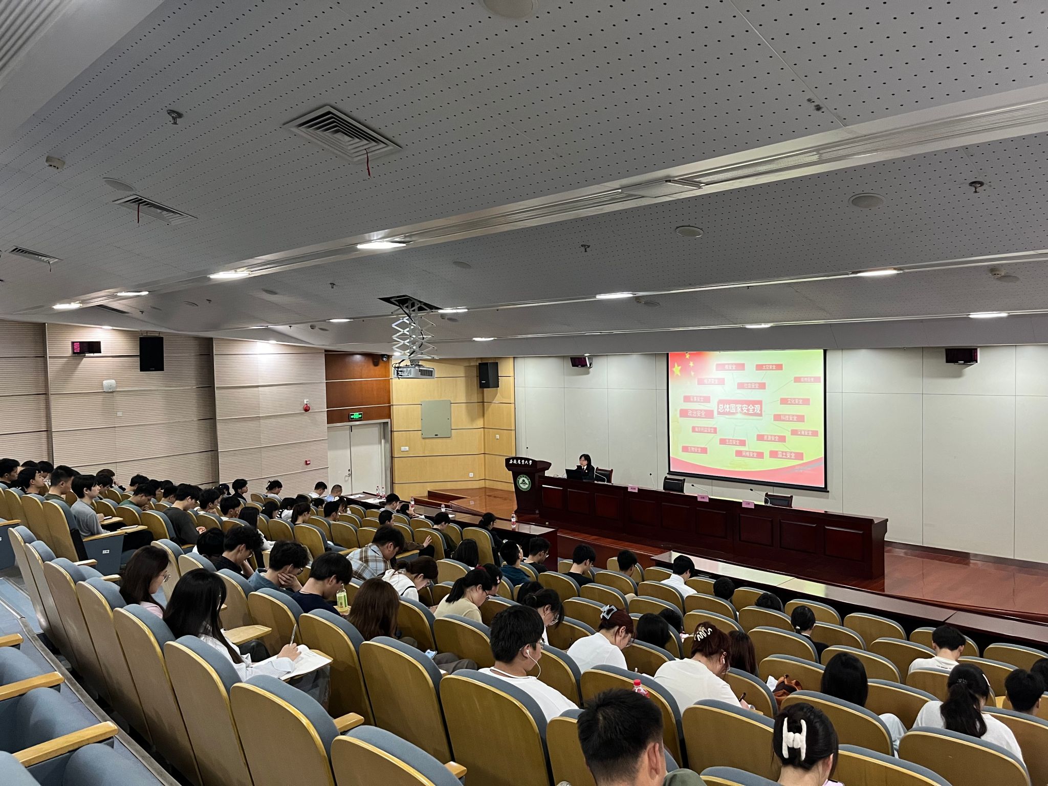 4月15日下午,邀请合肥市庐阳区人民检察院赵婕以“保守国家秘密,维护国家安全”为题作专题讲座。赵婕从何为国家秘密、保守国家秘密的重要性、保守国家秘密、维护国家安全、我们应当怎么做等方面深入浅出地解释了国家秘密及其重要性,对新修订《中华人民共和国保守国家秘密法》进行了解读,报告内容丰富、案例详实,强调了维护国家安全是每位公民的责任,要时刻注意保护国家信息安全,鼓励学生们在日常学习、研究和社交活动中,自觉遵守国家法律法规,切实履行保密义务,共同维护安全和谐的社会环境。