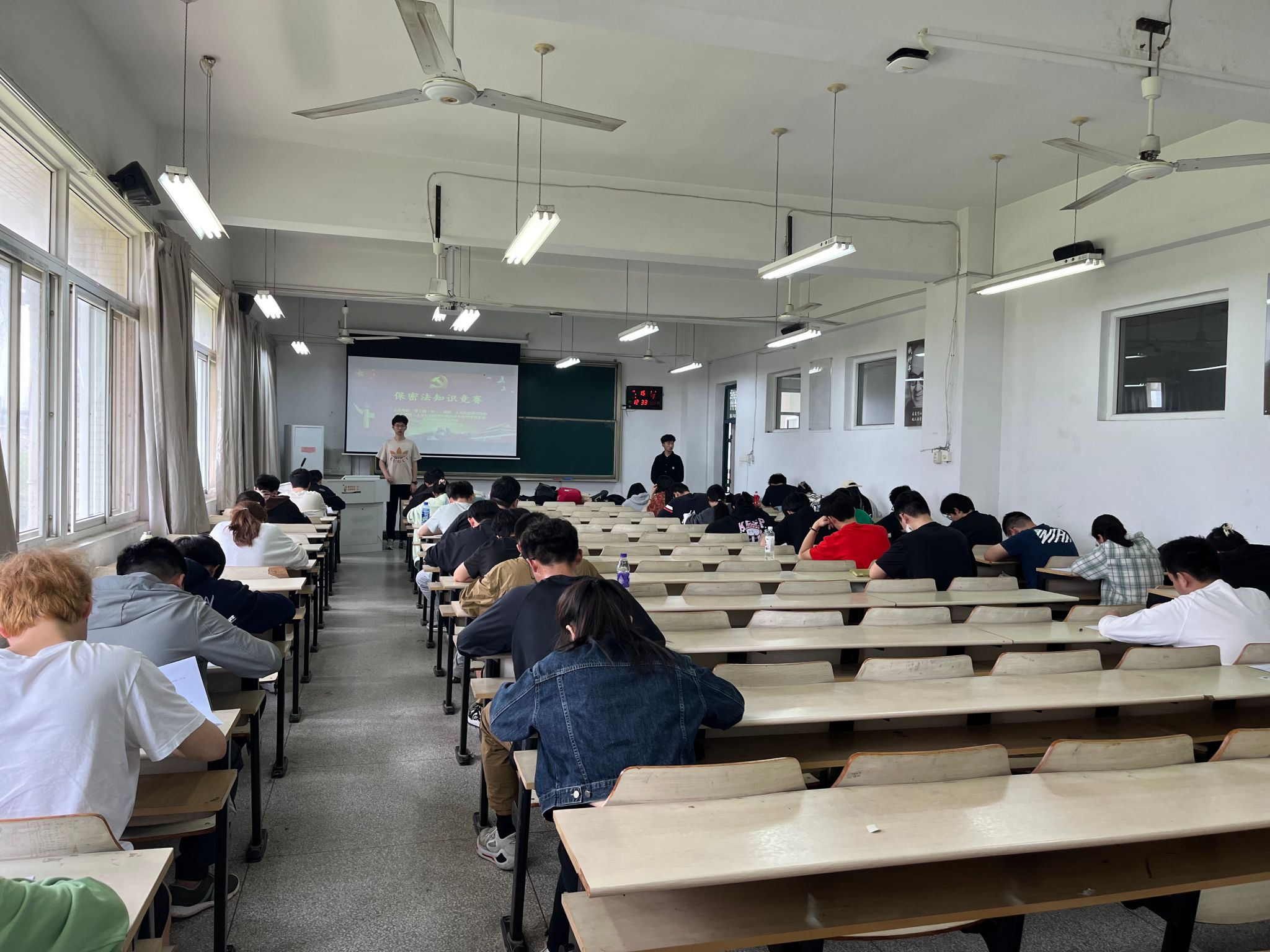 4月15日中午,“贯彻落实保密法,你我都是护密人”保密法知识竞赛顺利结束。比赛形式为笔试答题,试卷题型涵盖单选、多选、判断、填空和简答,全方位考察了同学们的国家安全和保密法知识。