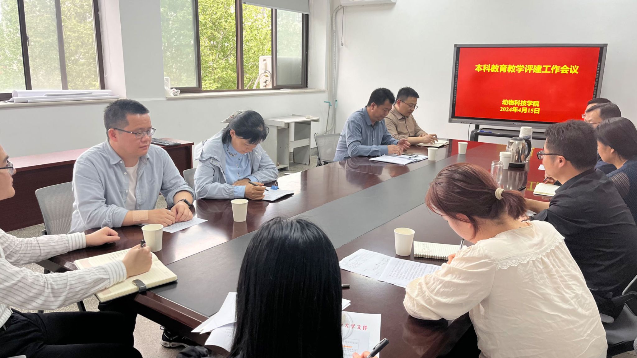 本网讯 4月15日下午,动物科技学院召开本科教育教学审核评估工作推进教职工大会和评建工作组会议。会议分阶段由院长张子军和王希春教授主持。