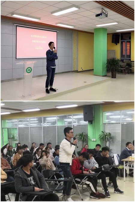 本次活动邀请了张灿、许辉两位青年农场主创业代表分享自己独特的创业故事和经验。张灿耐心地介绍了聚果驿站的成长与发展,从一开始的小型坚果产业到后来扩大到各种特色水果线下和线上营销,自主校园水果平台的成功打造,离不开经济学的相关知识和强大、有凝聚力的团队。许辉向大家分享了自己与稻虾米一同走过的或苦或甜的时光。从接触到了解,再到对市场营销模式的探索和产品定位的分析,都是不断学习、不断成长的过程。创业非常考验一个人的综合能力、团队建设、市场分析、风险预估能力等等。并强调了专业知识学习的重要性。