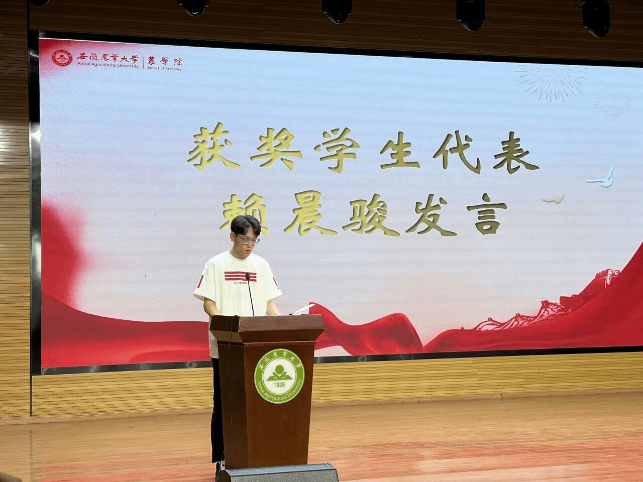 典礼现场,获奖学生代表赖晨骏发表获奖感言,介绍了自己在“朝阳奖学金”的激励下取得的一系列成绩,并表示要赓续“爱农”情怀,继续增强服务本领。十佳班级、红旗团支部分别进行风采展示,分享班级、团支部建设经验与做法。