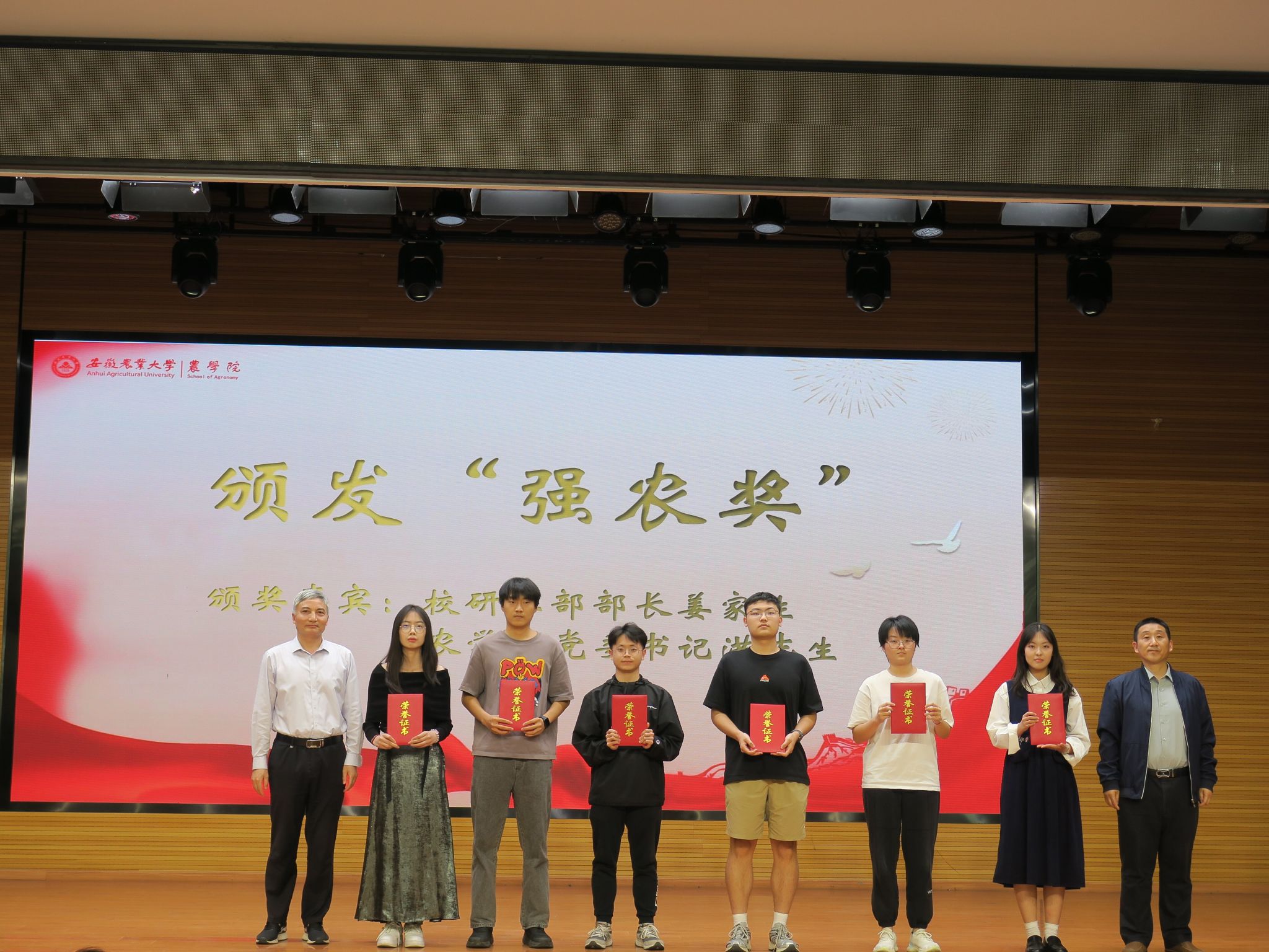 本网讯 五四青年节来临之际,为表彰先进、树立典型,培养更多爱农、兴农、强农的新时代农业人才。4月24日下午,农学院在欣苑四楼学生活动中心举办“朝阳奖学金”颁奖典礼。研工部部长姜家生、学生处副处长吕剑秋、教务处副处长钱慧、团委副书记柳洁、农学院党政领导出席典礼,并为获奖学生代表颁奖。学院师生代表参加典礼。