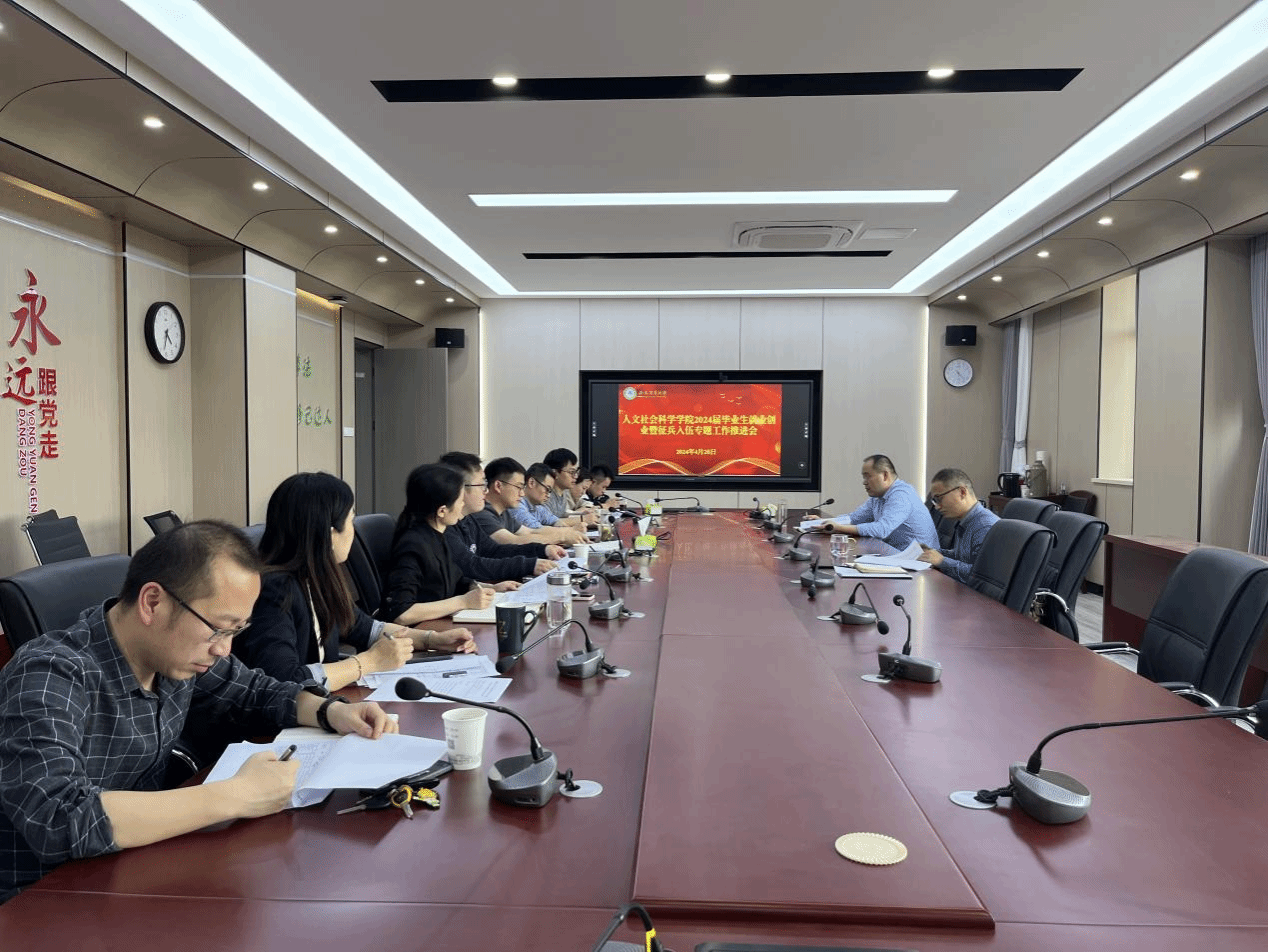 本网讯 为进一步做好毕业生就业工作,4月26日,人文社会科学学院召开2024届毕业生就业创业暨征兵工作推进会,学院党委书记王冬平、各系部主任及毕业班辅导员参加会议。会议由党委副书记单国雷主持。