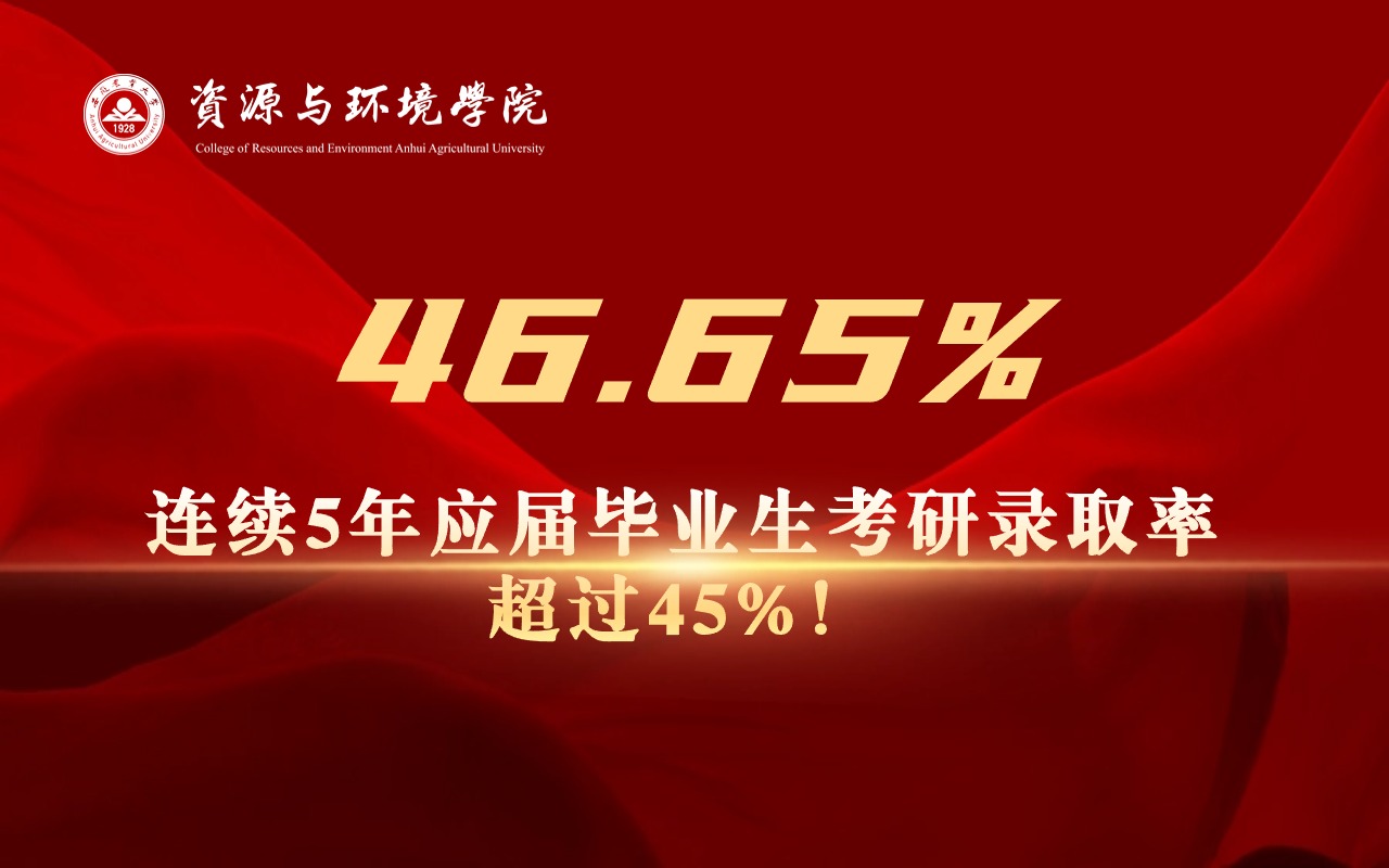 本网讯 近日,随着2024年全国硕士研究生招生考试录取结果陆续公布,安徽农业大学资源与环境学院硕果累累,考研录取率达46.65%,连续5年超过45%!