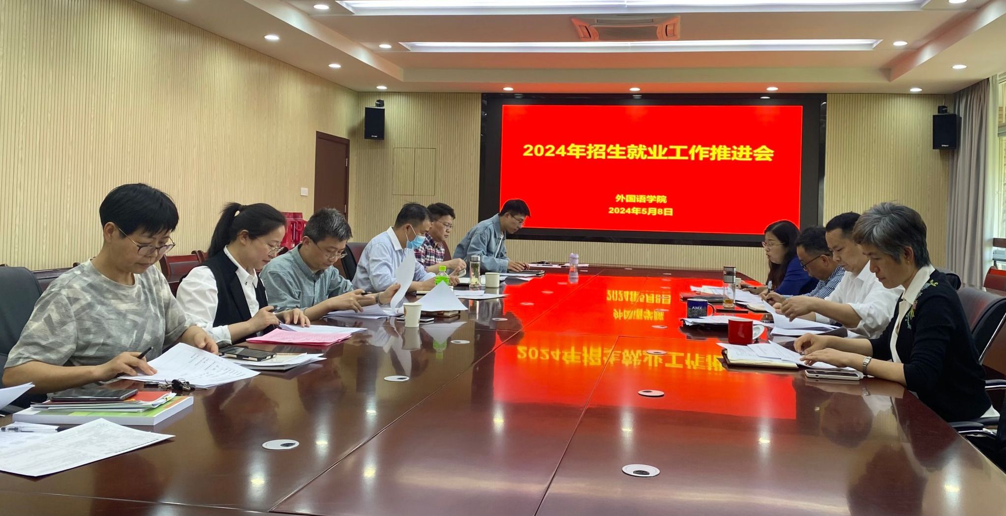 本网讯 为进一步做好2024年招生就业工作,5月8日下午,外国语学院召开了招生就业工作推进会。学院党委书记何如海、副书记姬惠惠、副院长张文静、各系(部)主任、副主任、全体辅导员,教学秘书,就业联络员等参加了会议。会议由副院长许宗瑞主持。
