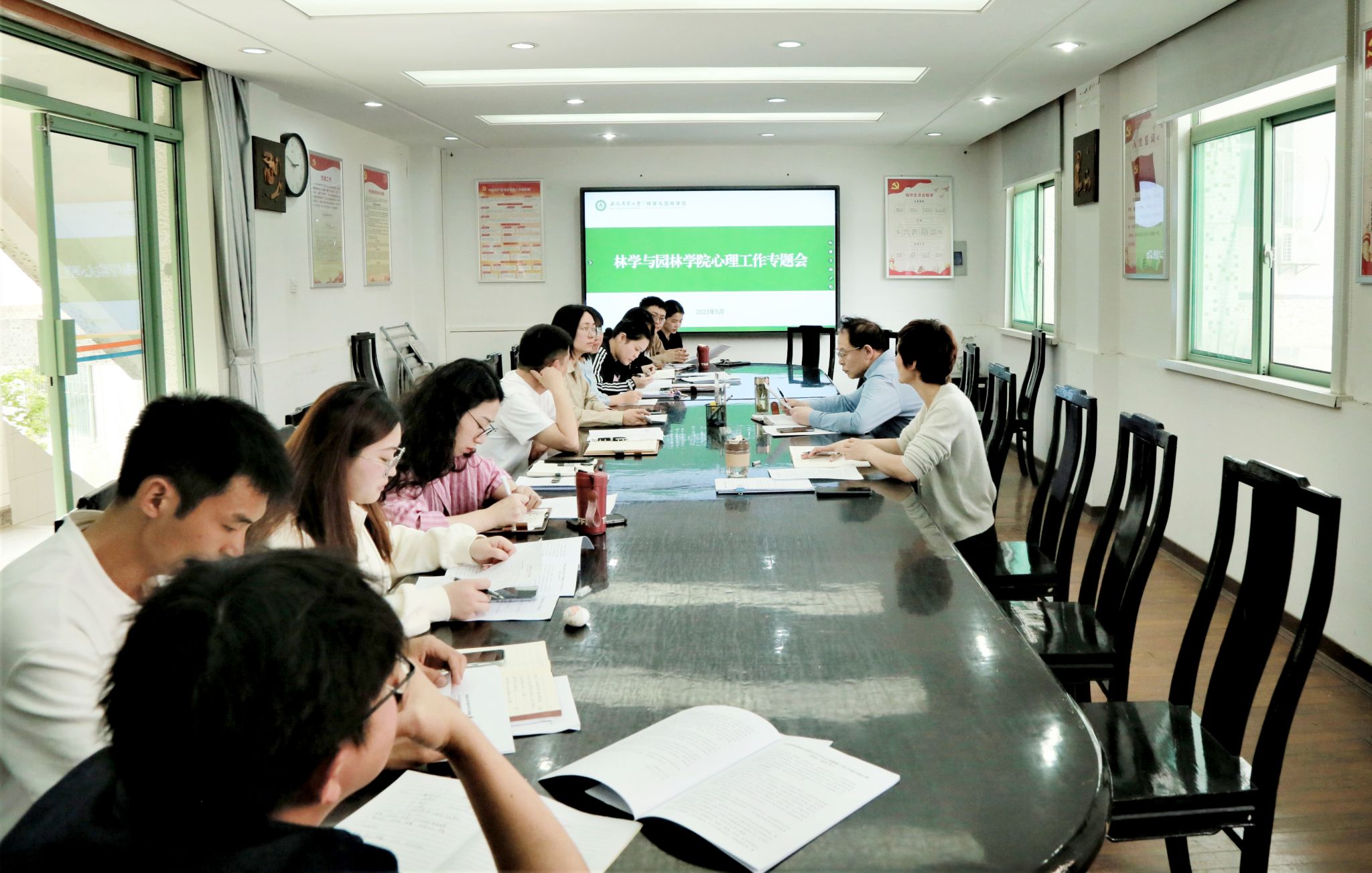 本网讯 5月9日下午,林学与园林学院召开学生心理工作专题会,研究部署相关工作。学院党委书记江正君出席会议,全体本科、研究生专兼职辅导员参会。