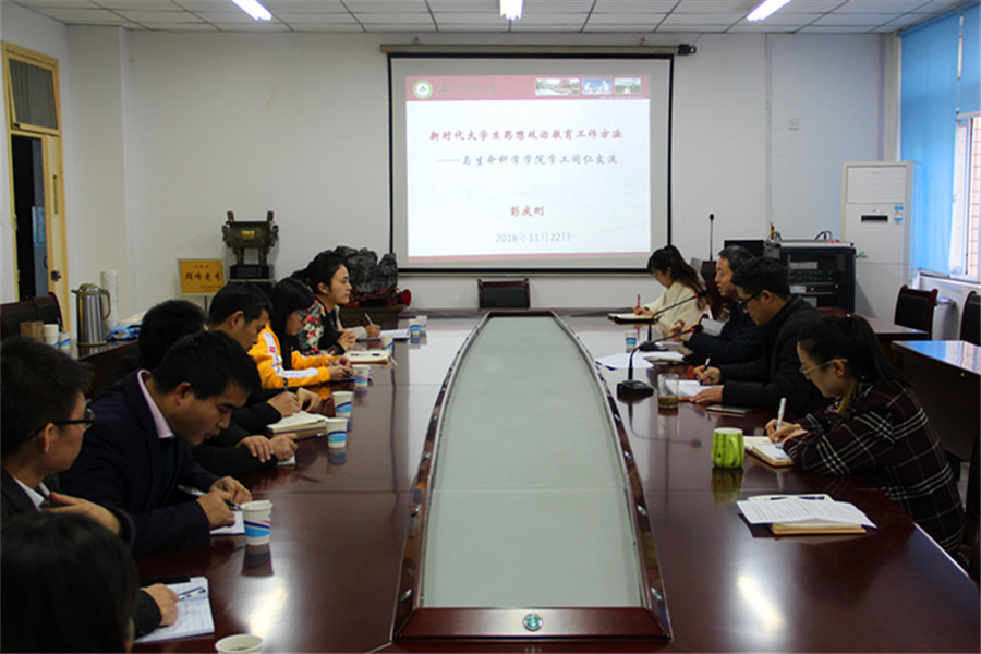 彭庆刚向全体辅导员做了“新时代大学生思想政治教育工作方法”主题报告。他从“知己知彼,理解人生三问”、“把握问题,实现职业目标”、“掌握做法,培养时代人才”、“注重细节,开展具体工作”四个方面对辅导员工作的开展进行了专业辅导,他强调,辅导员是开展大学生思想政治教育的骨干力量,要强化身份认同、情感认同、价值认同、行为认同;要创新工作方法,掌握新时代教育工作新矛盾,把握新使命新方法;要把握主流,关注两头,解决具有针对性、实效性的问题。会上,彭庆刚还结合“三全育人”,指出做学生思想政治教育工作要贴合实际,帮助学生树立具体的目标,帮助学生养成良好的习惯,帮助学生找准自己的定位,同时辅导员自身也要探索职业化的道路,不断调整心态。