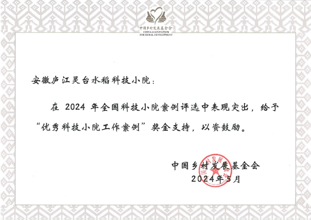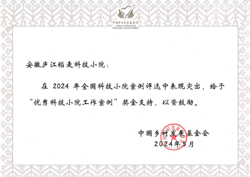 本网讯 近日,2024年全国科技小院大会在云南大理举行,会议颁发了2024年全国科技小院典型工作案例。我校资源与环境学院负责建设的安徽庐江稻麦轮作科技小院、安徽庐江灵台水稻科技小院获评“优秀科技小院工作案例”。