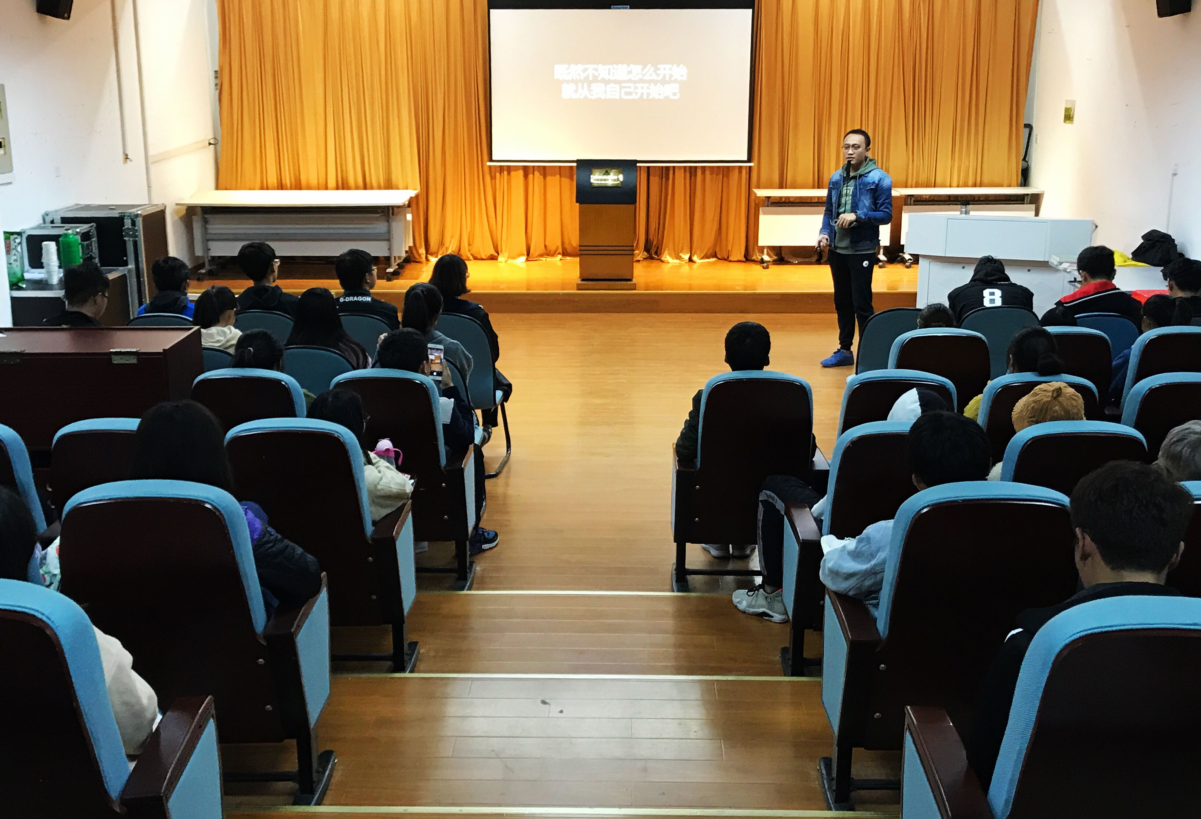 讲座中,唐力与同学们分享了自己在大学学习、二战考研、实习求职中的艰辛、喜悦、收获和思考,与同学们交流了树立职业目标和发展方向时应考虑的因素,勉励同学们根据自己的情况合理定位、选择目标,并在大学期间努力学习、积聚力量,诙谐幽默、亲切朴实的话语引得掌声阵阵。