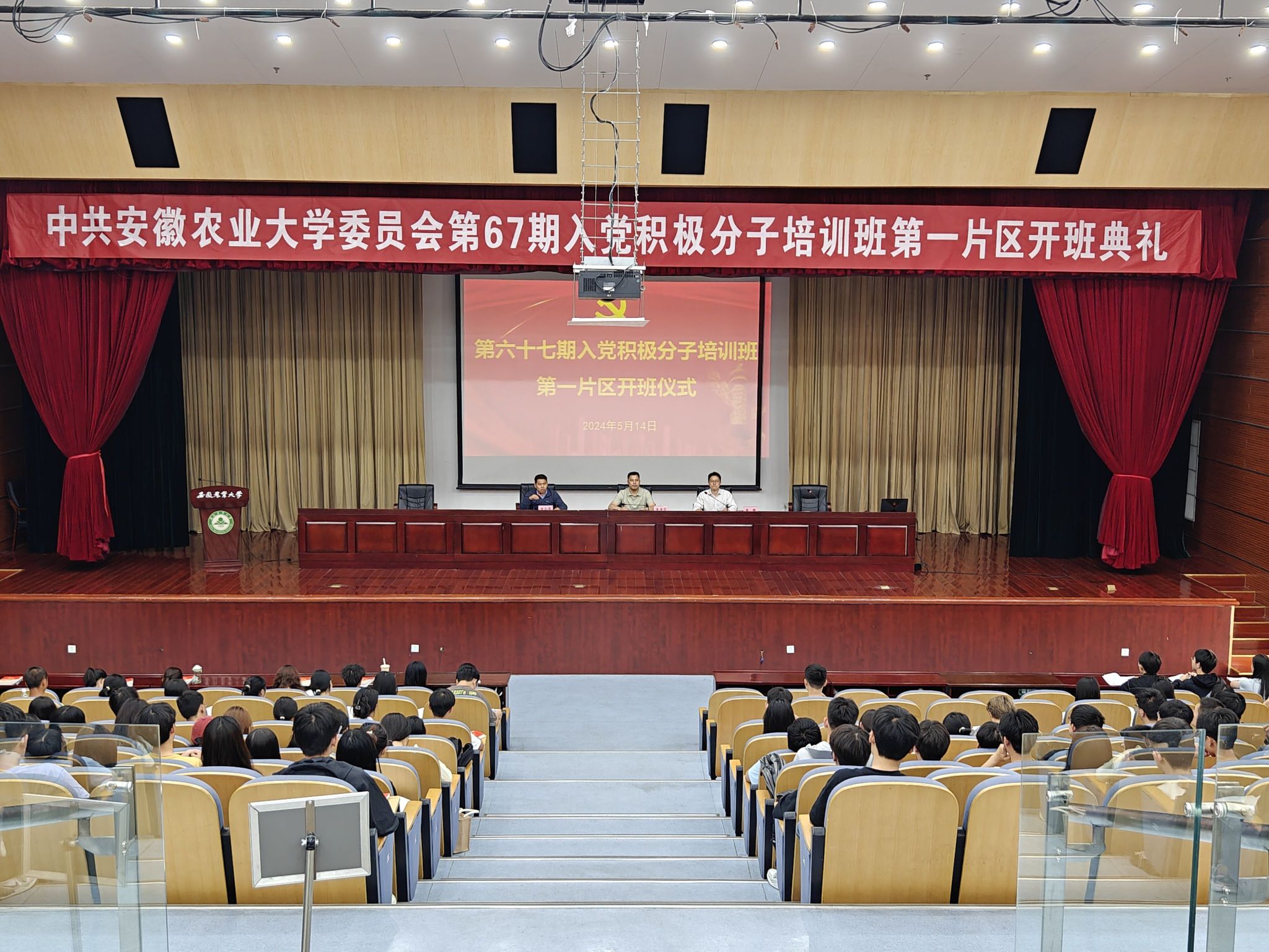 本网讯 5月14中午,校第一片区分党校第六十七期大学生入党积极分子培训班开班仪式在图书馆第一报告厅举行。工学院党委书记张国学、园艺学院党委副书记陈公伟出席会议,303名学员和党课班主任参加了会议。会议由工学院党委副书记张璐主持。