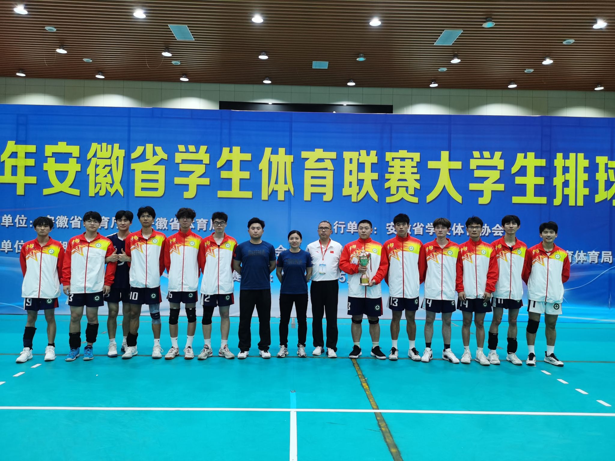 本网讯 由安徽省教育厅、安徽省体育局主办,巢湖学院、安徽省学校体育协会排球分会承办的2024年安徽省学生体育联赛大学生排球赛高校部比赛于5月8日至15日在巢湖举行,我校男子排球队团结协作、不畏艰难,获得甲组第四名的佳绩。