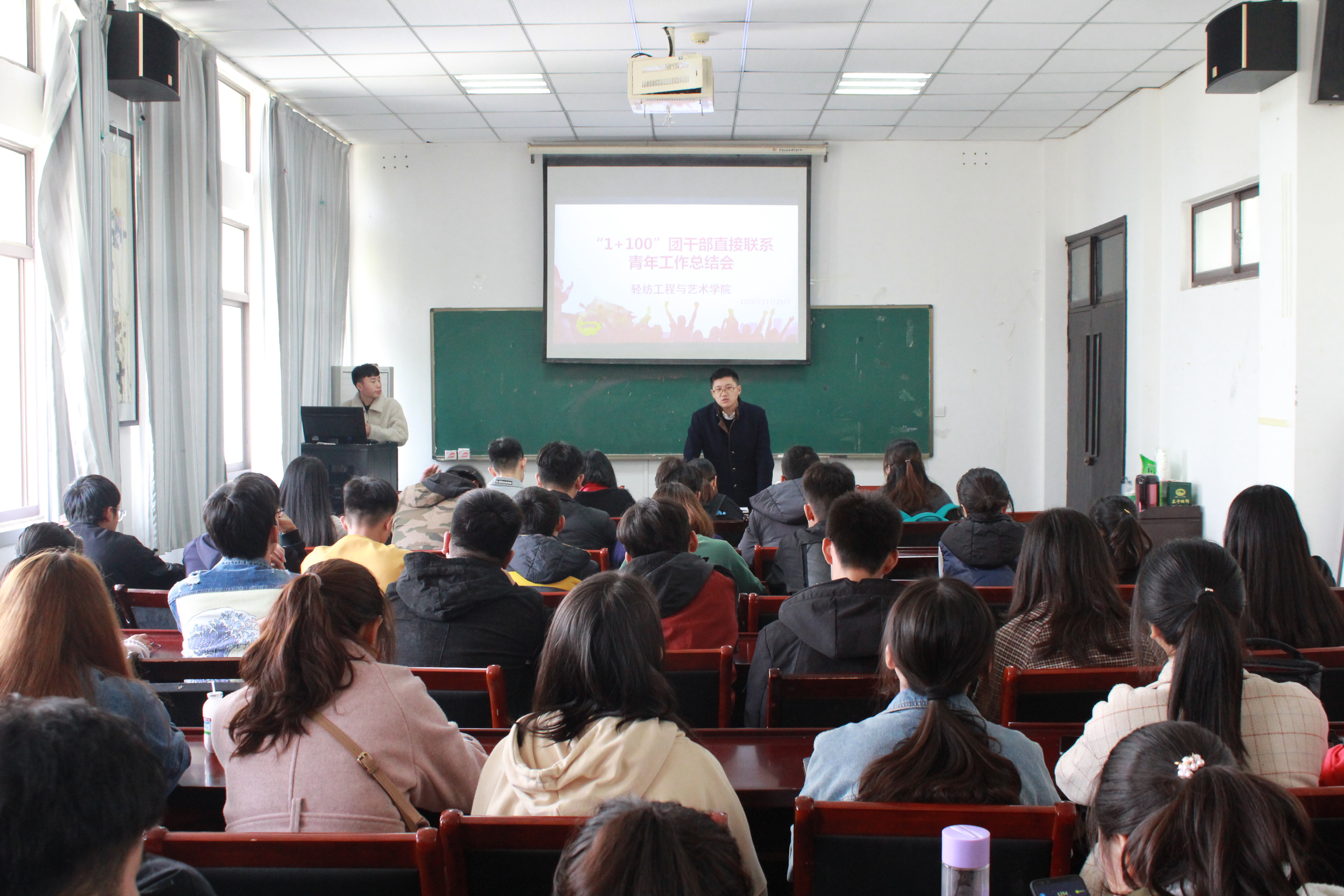 本网讯 为落实好共青团“1+100”团干部直接联系青年工作,切实发挥团组织联系和服务青年作用,促进和服务青年健康成长,11月29日中午,轻纺工程与艺术学院在轻纺四楼会议室开展了“1+100”团干部直接联系青年工作总结会,学院团委委员、主要团干参加会议,会议由团委老师主持。