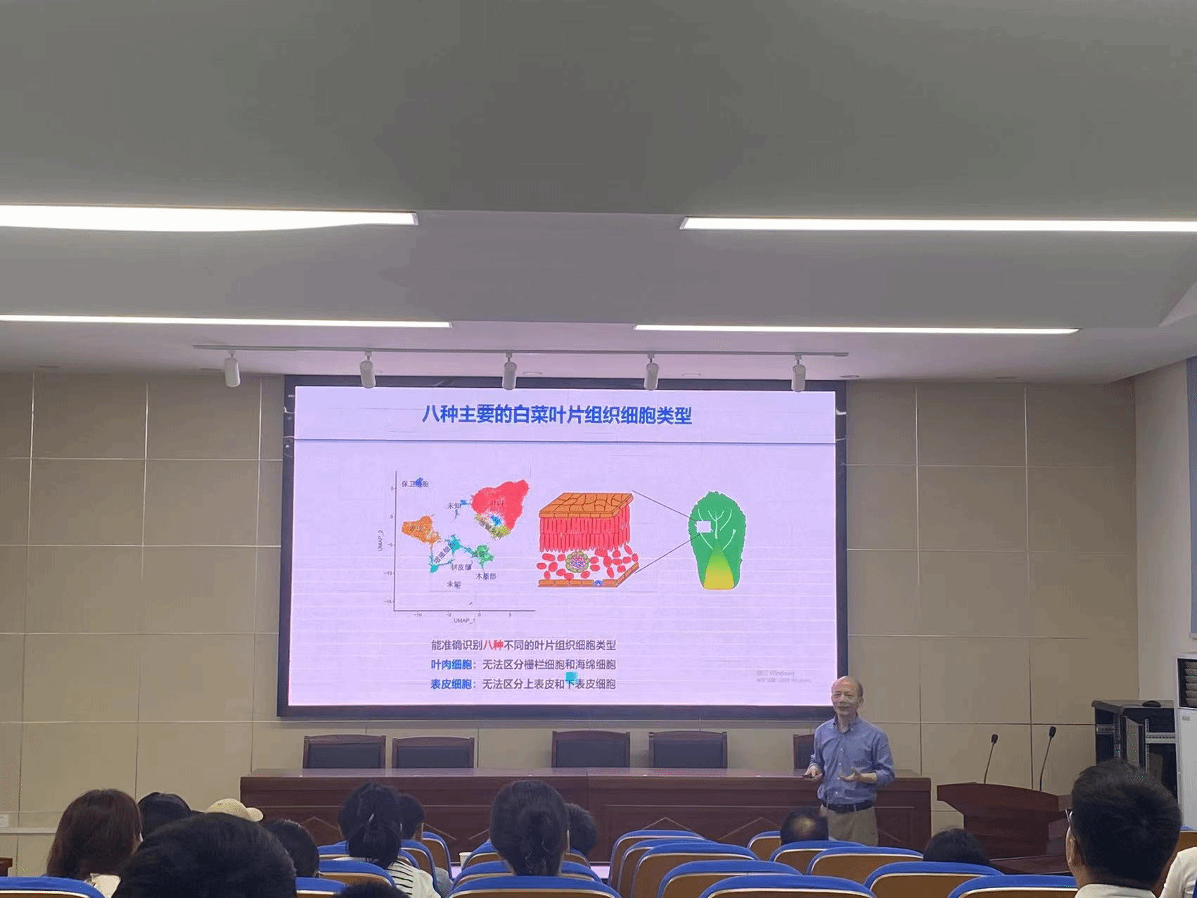 王晓武研究员围绕大白菜叶片单细胞的异质性,利用单细胞转录组测序技术探索叶片栅栏组织和海绵组织之间的分化,确定关键调控基因及揭示叶片发育和叶球形成机制做了一场精彩的报告。随后院内师生进行了充分的互动交流,王晓武研究员详细解答了院内师生的疑惑。该次报告会促进了我院师生对白菜类和其他芸薹属作物的叶片发育和形态发生的复杂过程的了解,营造了良好的学术氛围。(图文/唐小燕 编辑/李建超 预审/朱晓彪 审核/郑雪林)