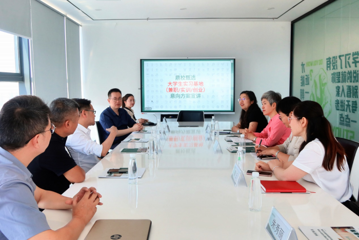 本网讯 5月16日,外国语学院党委副书记姬惠惠、副院长张文静一行赴安徽鼎校教育科技有限公司,开展访企拓岗、洽谈产学研合作。创始人徐江泉总经理、交付经理杜明超、高校合作项目经理赵研、教研管理余倩、交付负责人唐云热情接待了学院一行。