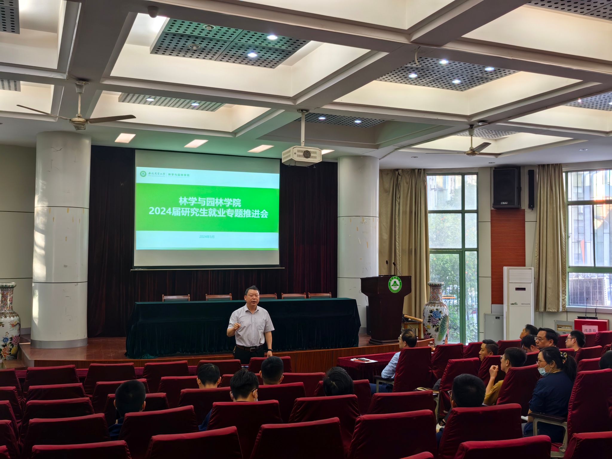 本网讯 为深入推进2024届研究生就业工作,促进毕业生高质量就业,5月15日下午,林学与园林学院在一楼报告厅专题推进2024年研究生就业工作。学院院长徐斌主持会议,学院领导班子成员、全体研究生导师参会。