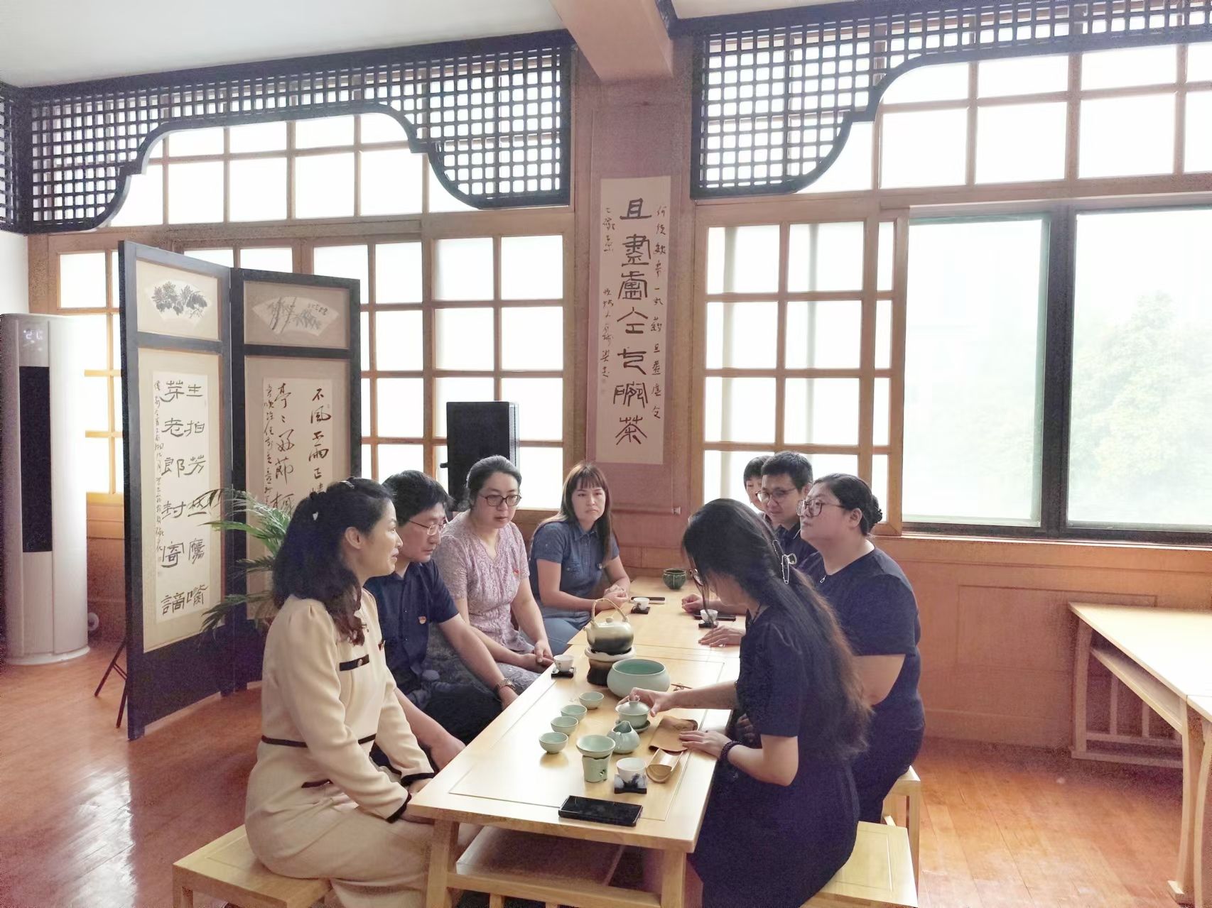 本网讯 5月21日,为迎接第五个国际茶日,茶与食品科技学院举办“茶和世界 共品共享”2024年第五届国际茶日主题活动。校学工处、国合处的相关领导,院党政领导班子成员,部分师生参加了活动。