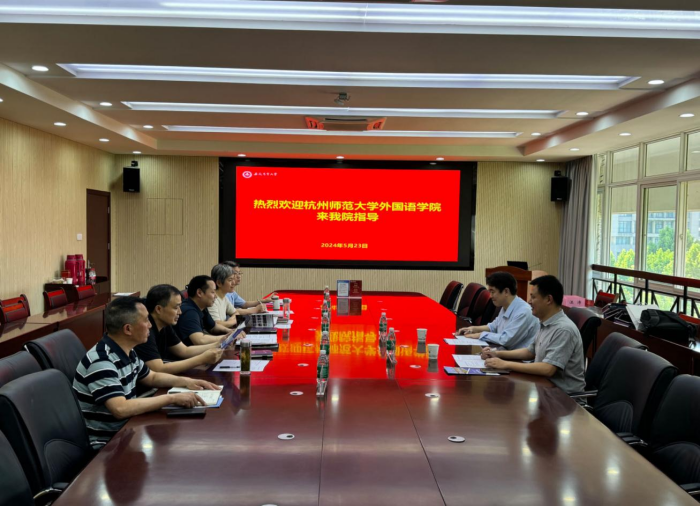 本网讯 5月23日下午,杭州师范大学外国语学院副院长孙立春一行来我校外国语学院调研交流。学院副院长许宗瑞、张文静以及相关系部负责人和科研秘书参加了座谈。会议由许宗瑞主持。