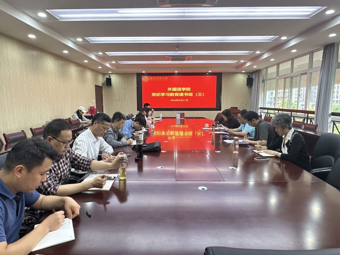 本网讯 5月27日下午,外国语学院举办党纪学习教育第三期专题读书班,学院党委副书记、纪委书记姬惠惠,院纪委委员、各党支部书记、纪检委员参加。读书班由学院党委书记何如海主持。