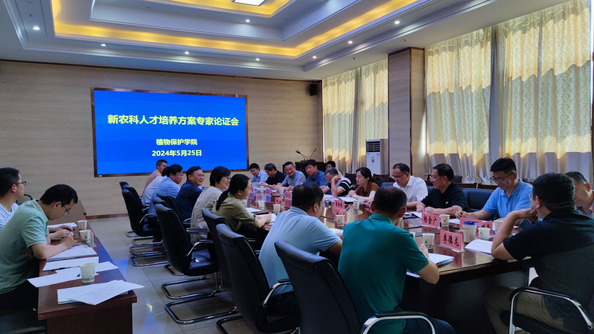 本网讯 5月25日下午,植物保护学院在中西部楼1213会议室召开新农科人才培养方案专家论证会。会议邀请来自中国农大、南京农大、吉林大学、福建农林、沈阳农大、宁波大学、青岛农大、中国农科院、湖南省农科院、安徽省植保总站等高校行业专家学者及校友企业代表参加论证会。校党委常委副校长操海群出席会议并讲话,教务处负责同志出席指导。学院领导班子及各专业建设负责人等参加了会议。