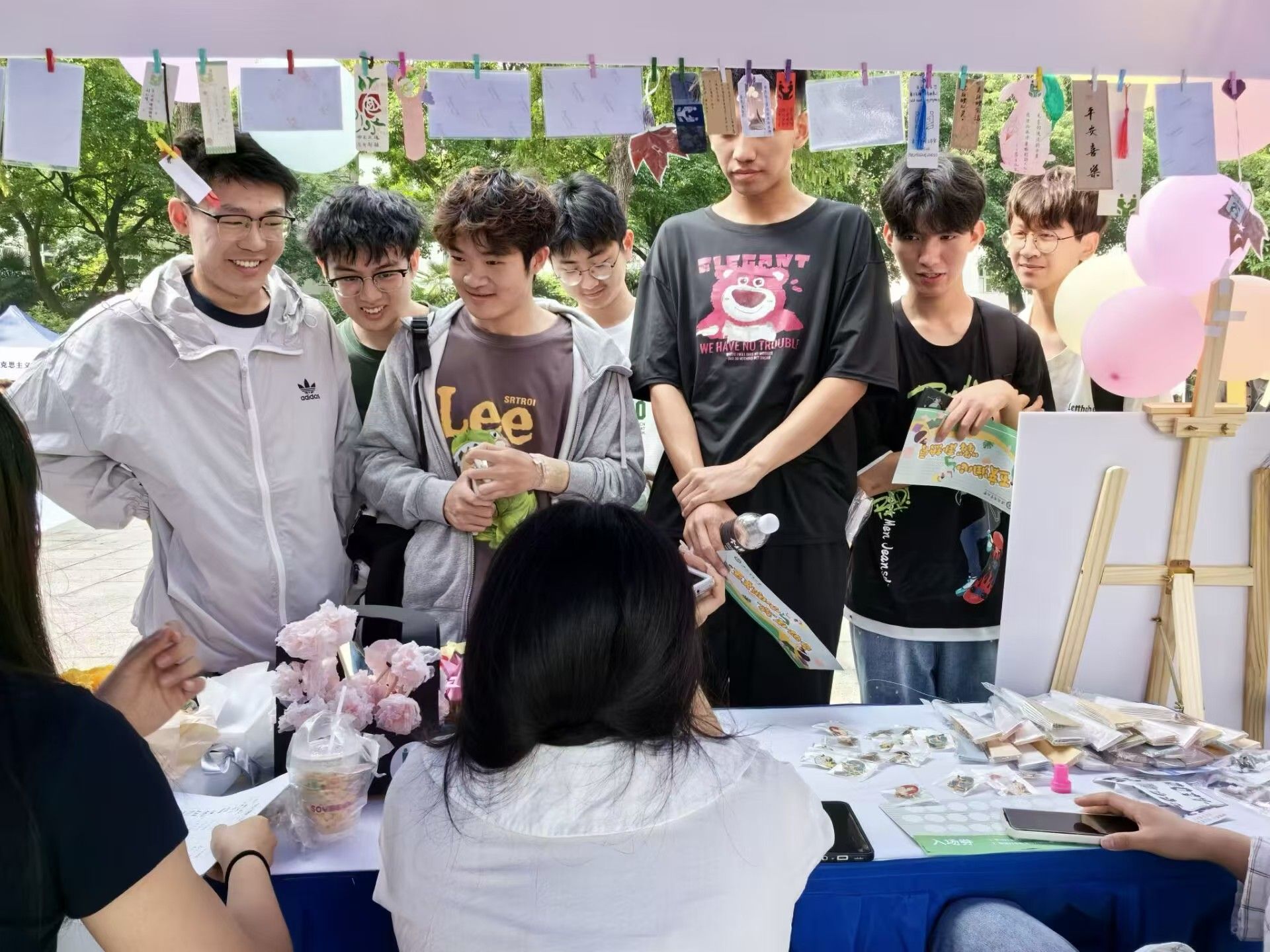 嘉年华现场活动精彩纷呈。学院共设置三个展台,分别包括“歌以潆声,曲以徊乐”听歌识名、“重塑心秩序,青春再启航”错误的乘法表、“心语心愿,筑梦之墙”心愿墙打卡等三项心理赋能活动。“听歌识名”环节,同学们都在仔细听着每一首歌的旋律,并争取快速答对歌曲的名字,在越来越多的歌曲被答对后,现场气氛逐渐达到高潮,同学们对活动的兴趣也逐渐达到顶峰。错误的乘法表活动,作为一个富有思想性、挑战性和趣味性的游戏,可以有效提高同学们的应变能力,培养同学们良好的团队合作能力。心愿墙打卡活动一开始,同学们便兴致昂扬,纷纷拿起五颜六色的马克笔在心愿墙上写下自己的心愿,说出自己的心声。一个个心愿和祝福的打卡,很快便填满了整个心愿墙,有助于鼓励学生更加努力的追求自己的梦想。