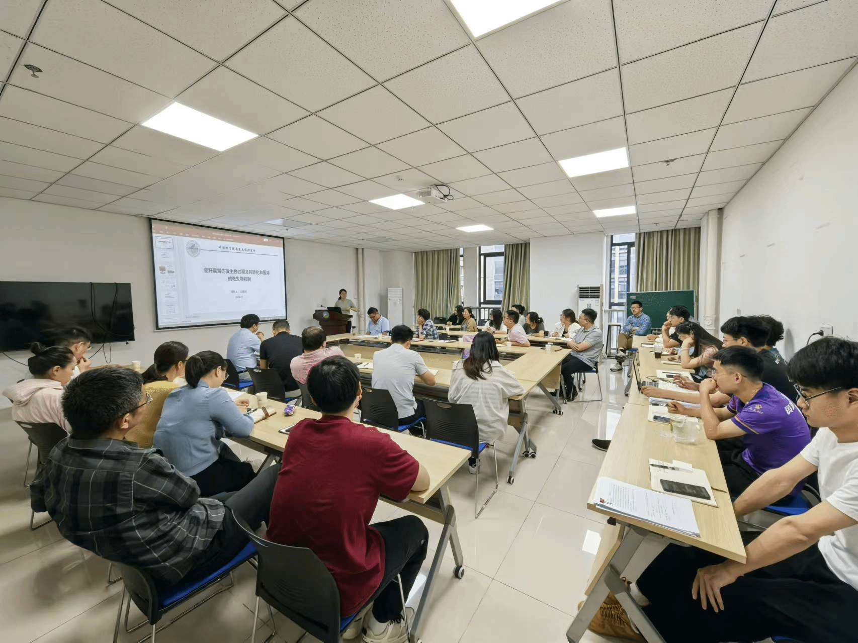 王晓玥作题为《秸秆腐解的微生物过程及其转化和固持的微生物机制》的报告,围绕“如何通过微生物调控,提高秸秆碳转化为有机碳的效率,并使其固持在团聚体中”这一科学前沿问题,阐述了秸秆分解的微生物过程及团聚体中有机碳固持转化的微生物机制,并重点介绍了微生物体外修饰和体内同化对秸秆腐解最终产物的影响。