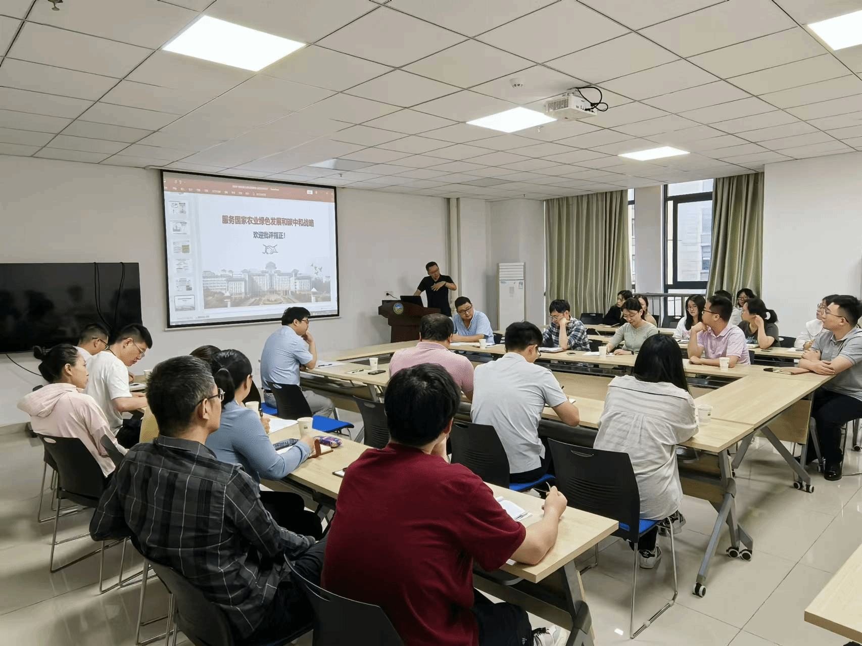 本网讯 5月27日上午,资源与环境学院在中西部综合楼南楼716会议室举行“绿洲”生态环境高峰论坛系列学术报告会,南京农业大学刘树伟教授、中国科学院南京土壤研究所王晓玥副研究员应邀来院交流并作学术报告。会议由学院副院长叶新新教授主持,学院40余名师生参加。