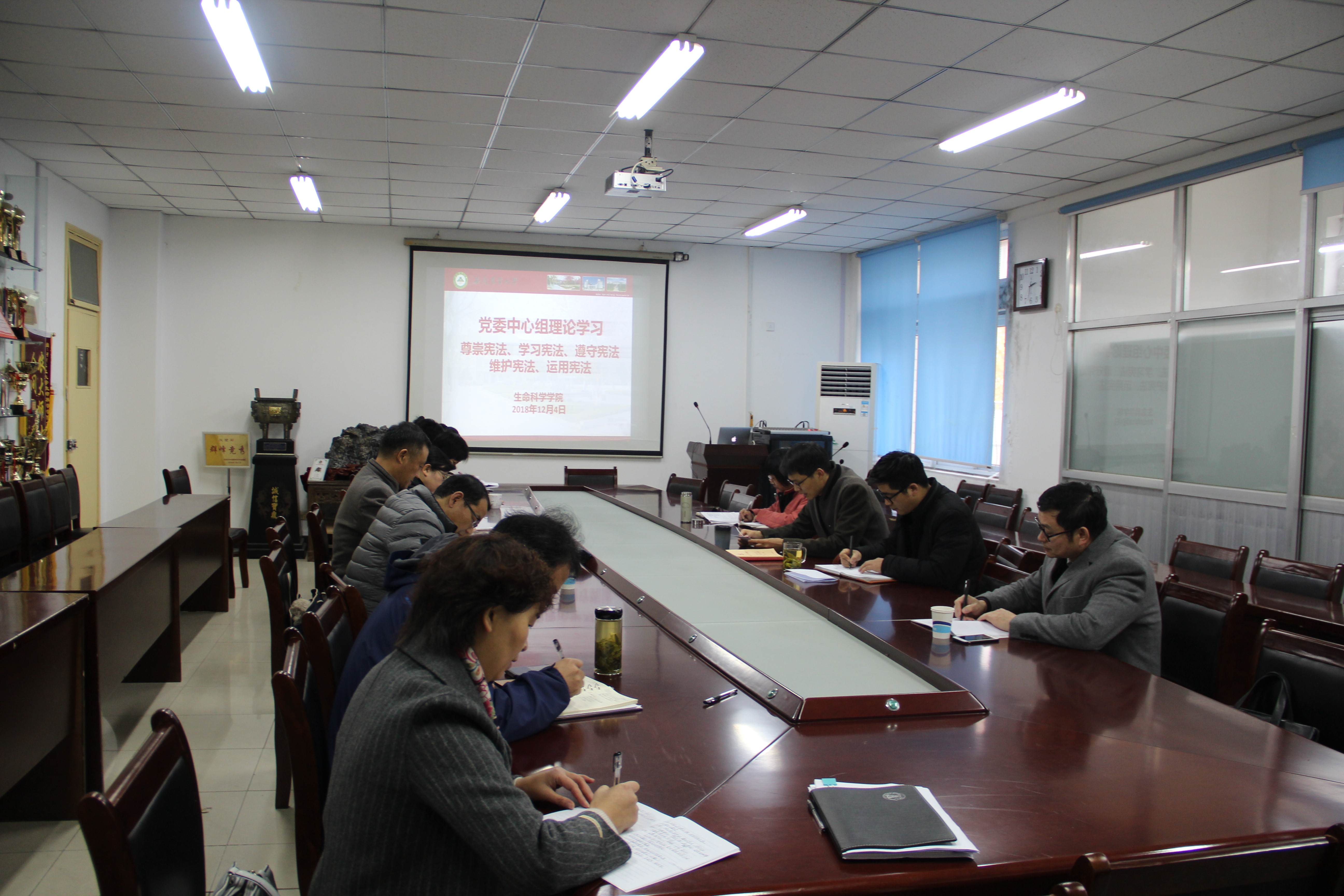 本网讯 12月4日下午,在第五个国家宪法日到来之际,生命科学学院党委中心组以“尊崇宪法、学习宪法、遵守宪法、维护宪法、运用宪法”为主题开展了专题理论学习。学院党委书记张健主持会议,学院党委委员、党支部书记参加了学习会。