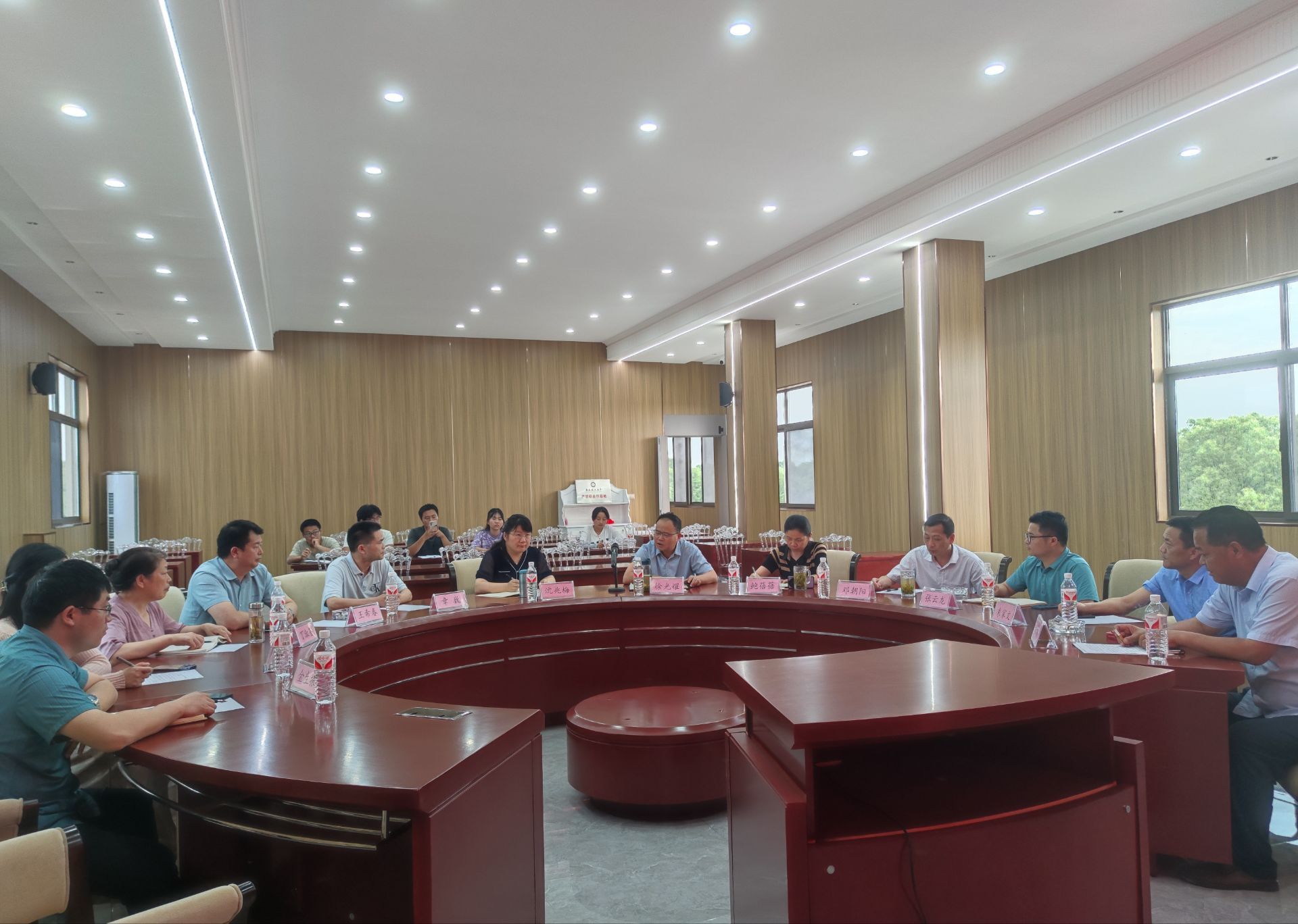 座谈会上,沈兆梅详细介绍了学院的师资力量、学科专业、科学研究、人才培养以及社会服务等情况,希望与用人单位在专业人才培养、科研课题攻关、学生实践实习、毕业生就业等方面加强深度合作交流。鸠江区人民政府副区长徐光耀、芜湖市农业农村局党组成员鲍蓓蓓等对沈兆梅一行的到来表示热烈欢迎,并介绍了芜湖市经济社会发展情况和水产产业发展现状及未来发展方向,希望校地、校企不断拓宽合作领域,促进高质量发展。小老海实业有限公司总经理沈保平详细介绍企业发展情况以及与安徽农业大学水产学科的合作历史,对动物科技学院水产系多年来对企业的支持表示感谢,高度认可水产系实习学生专业技能和综合素养。