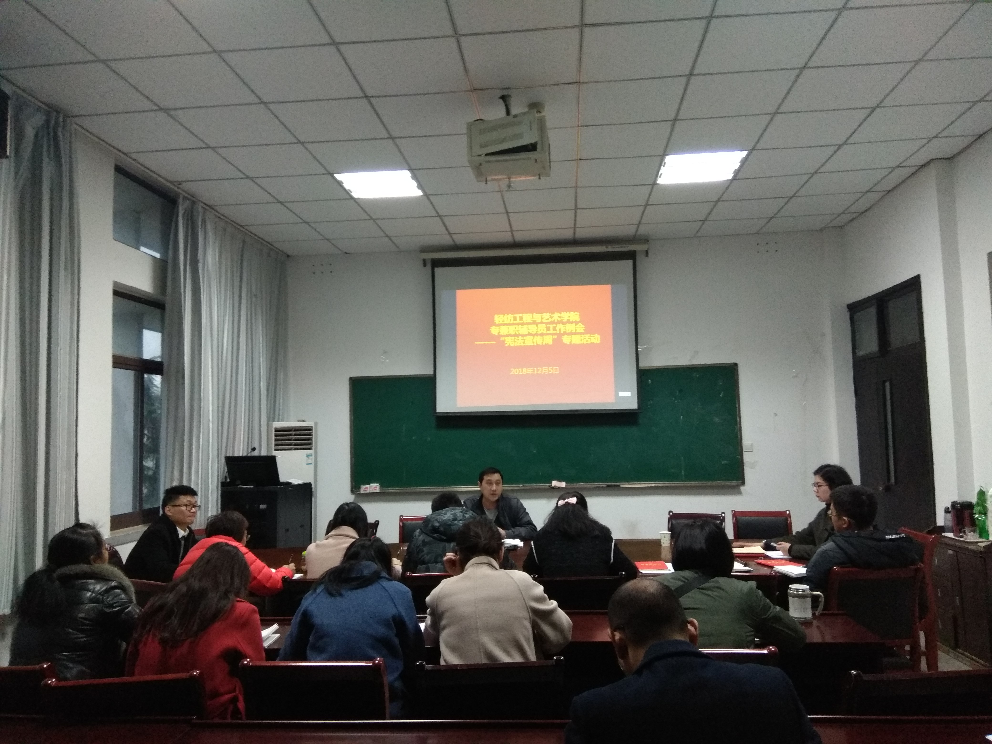 会上,吕剑秋就近期学院毕业生专场招聘会、毕业生学分审核、毕业生生源地信息审查、新生心理普查情况反馈、新生档案交接管理、新生晚自习安排、辅导员走访宿舍情况、学生宿舍安全管理、研究生考试考风考纪要求及近期学生反映的焦点问题等,进行了通报和工作部署。他要求全体辅导员老师要思想重视,强化日常管理,在确保学生安全稳定的基础上着力推进班风学风考风建设;要认真贯彻落实全国教育大会精神,坚持“立德树人”,深入学生宿舍、课堂,切实掌握所带学生的具体情况,积极完成学校和学院的各项工作任务;要加强自身建设,对照学校和学院的年终学生工作考核标准体系,加强学习和总结,不断提升工作能力。