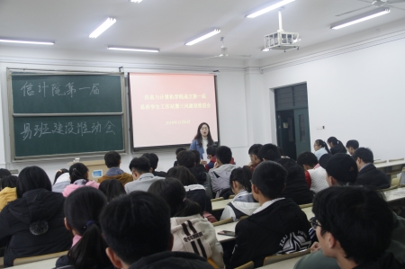 本网讯 12月6日中午,信息与计算机学院在302教室举行第一届易班学生工作站成立仪式,校学生处易班工作站培训人员、院团委老师、院易班学生工作站全体成员以及18级学生骨干参加成立大会。