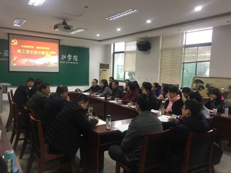 最后,檀根甲做总结讲话。他指出,在《中国共产党支部工作条例》颁布之际,两个支部开展此次主题党日活动,对于提高基层党支部的工作很有意义,这不仅是两个支部间的交流,也是两个学院之间的紧密联动,他希望双方日后在专业英语教学、考研英语辅导、科研项目和论文写作等方面加强沟通,共同发展。(通讯员:林婷婷)
