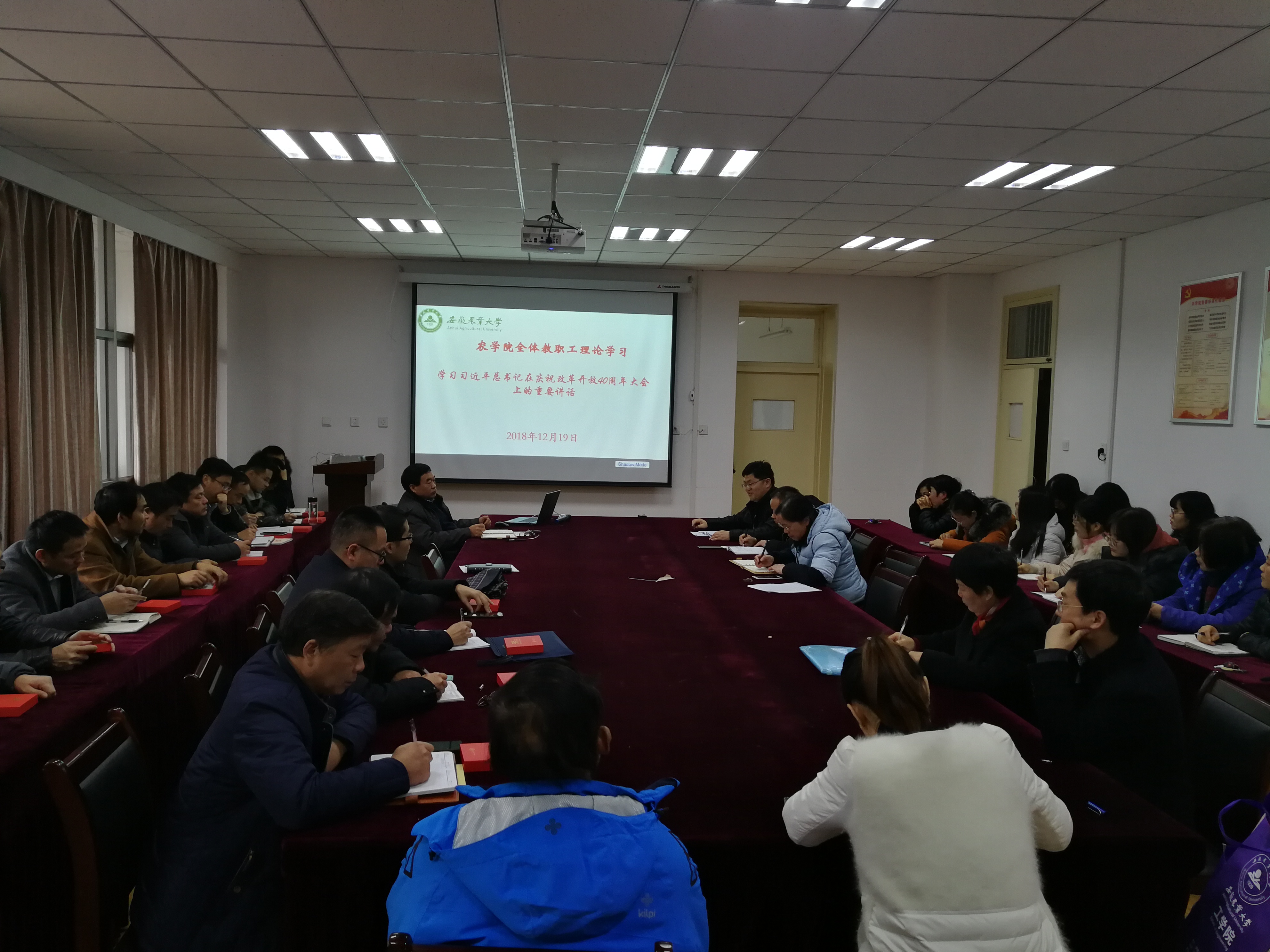 本网讯 为深入学习领会习近平总书记在庆祝改革开放40周年大会上的重要讲话精神,12月19日下午,农学院组织全院教职工在十教518会议室学习重要讲话全文。会议由院党委书记汪凤莲主持。