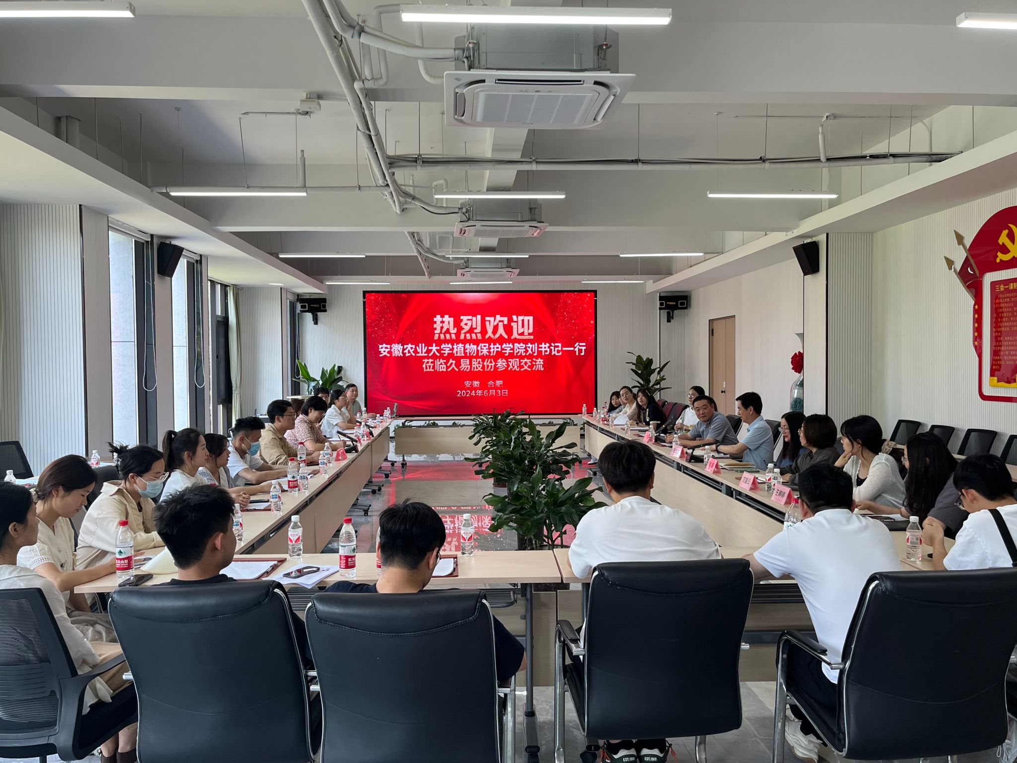 本网讯 6月3日,植物保护学院党委书记刘柳一行赴安徽久易农业股份有限公司开展访企拓岗、洽谈产学研合作、看望慰问校友。久易农业股份有限公司董事长、总经理沈运河、营销总监王友定等热情接待了学院一行。