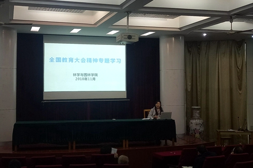 本网讯12月19日下午,林学与园林学院在学院一楼报告厅开展了全国教育大会精神专题学习,学院党委书记唐红萍作宣讲报告。学院全体教职工参加宣讲会。