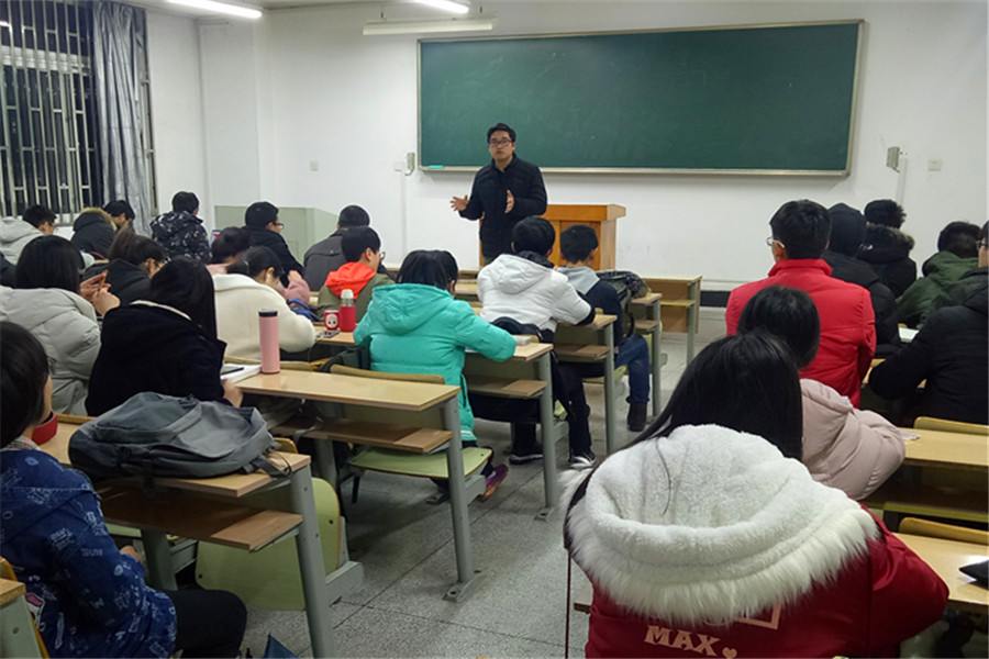 本网讯 为加强“三风”建设,贯彻落实学校《关于小学期试行新生班级固定教室开展晚自习的通知》精神,进一步树立学生自觉学习的意识,养成自主学习的良好习惯,增进同学之间的了解和交流,在丰富学生课余生活和加强对课堂知识的巩固的同时,营造学院学习之风。生命科学学院组织2018级学生实施晚自习制度。12月24日晚,生命科学学院党委带领学院2018级专兼职辅导员开展晚自习检查工作。