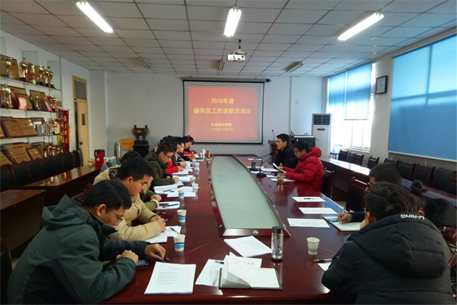 本网讯 12月29日上午,生命科学学院在十教216会议室召开2018年度专兼职辅导员工作述职交流会。学院党委书记张健出席此次会议,全体专兼职辅导员参加了此次会议。