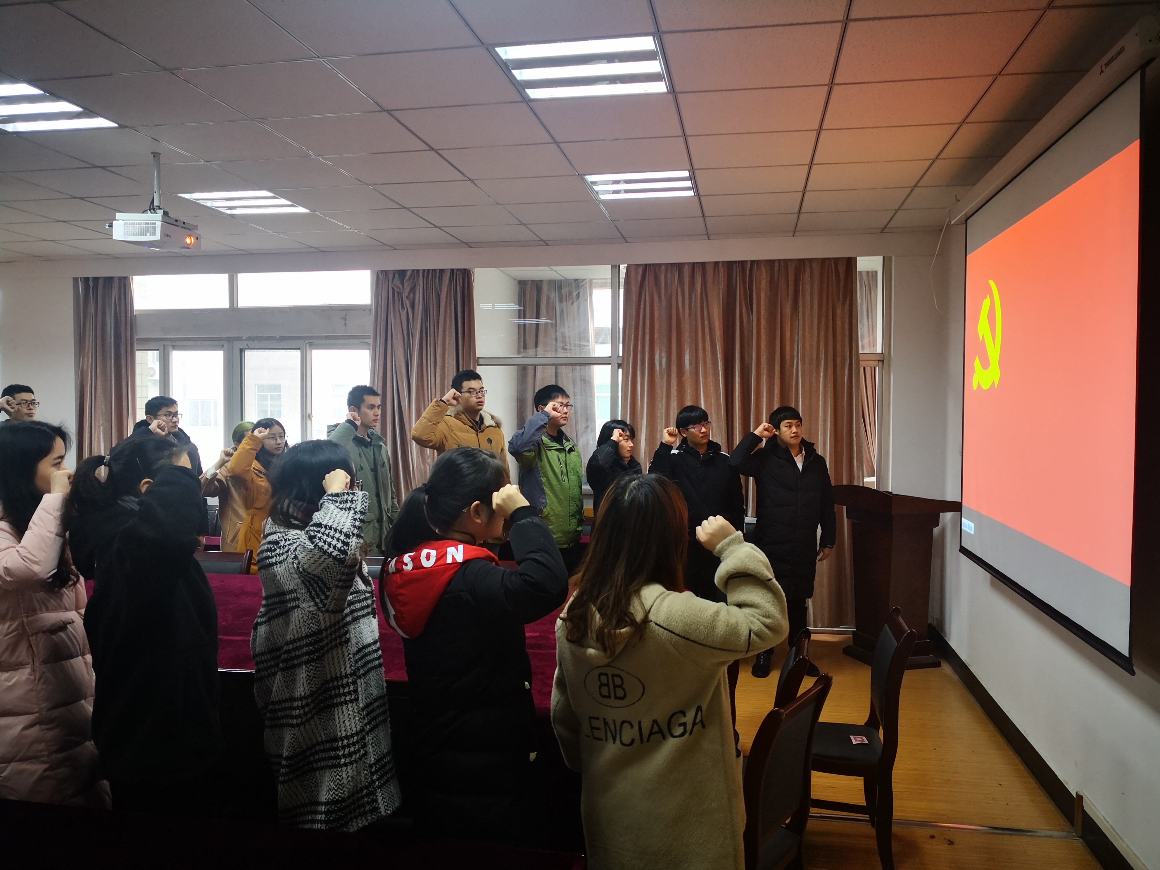 本网讯 1月8日中午,农学院党委在十教518组织2018年新发展党员入党宣誓仪式及远程教育专题学习。2018年下半年发展的20名学生党员参加宣誓仪式。