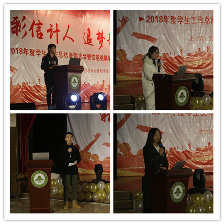 在热烈的掌声中,信息与计算机学院党委书记曹俊代表学院向一直以来关心和支持学院发展的学校领导、校直部门和公司表示诚挚的谢意,向兢兢业业、奋斗在学院教学科研和管理工作一线的各位老师表示由衷的敬意,向勤奋学习、积极进取的全院学生致以新年最诚挚的祝福和问候,向受表彰的先进集体和优秀个人表示了热烈祝贺。同时,希望全院师生携手同心,不忘初心、牢记使命,与时俱进、开拓创新,在最宝贵的青春岁月里奋力搏击;希望信计学子以榜样为标杆,勤奋学习、砥砺前行,在创优争先、学比赶超中实现青春梦想;希望获得企业资助的先进个人,自强不息、奋发成才,不辜负爱心企业和学院的殷切期望,自觉承担起实现中华民族伟大复兴的中国梦的历史使命和责任担当,以优异成绩回报学校、回报社会。
