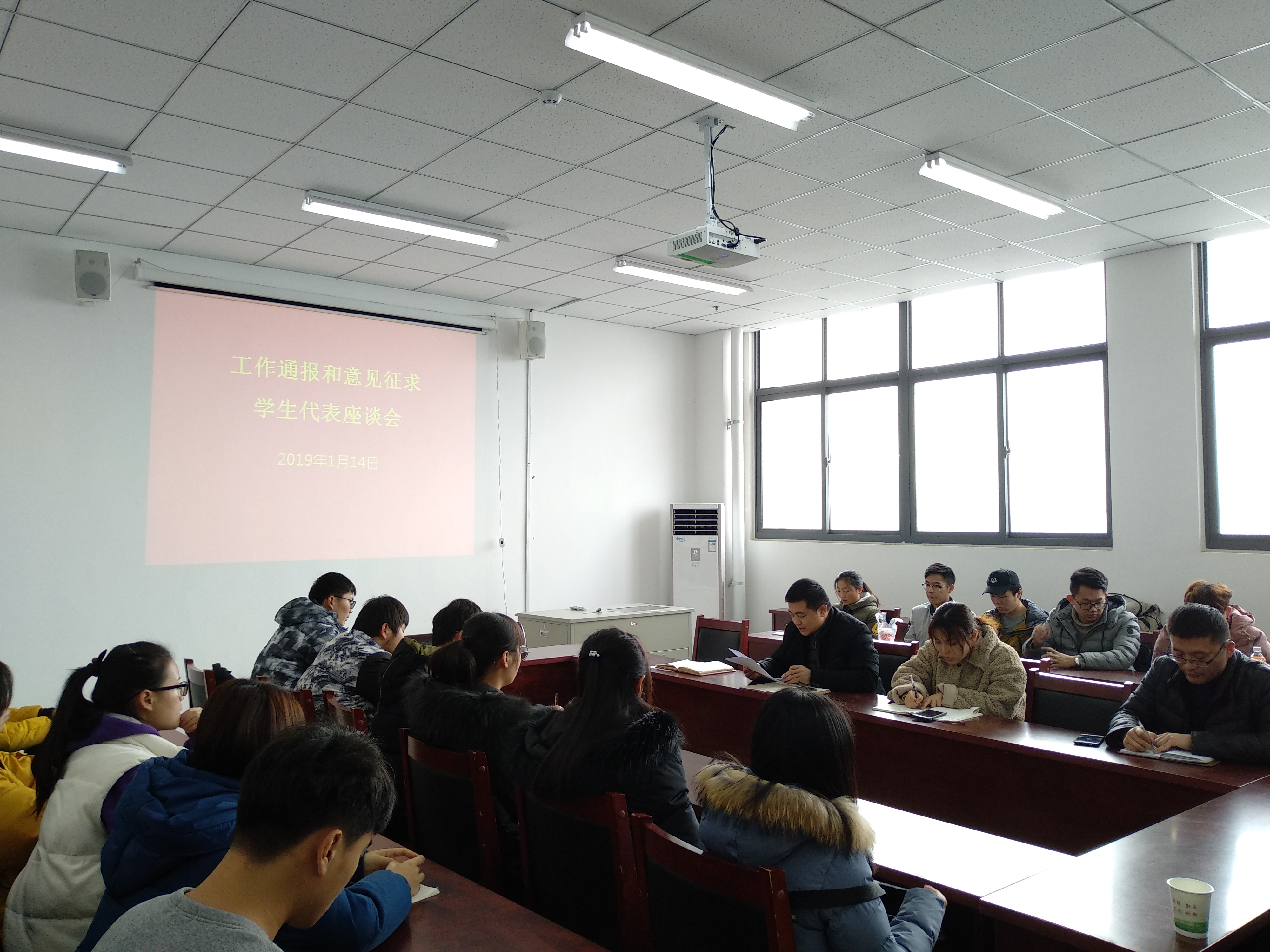 本网讯1月14日,植物保护学院在中西部大楼1223室召开工作通报和意见征求学生代表座谈会。学院党委副书记、副院长戴照力,各班班长、团支书等学生代表参加座谈。