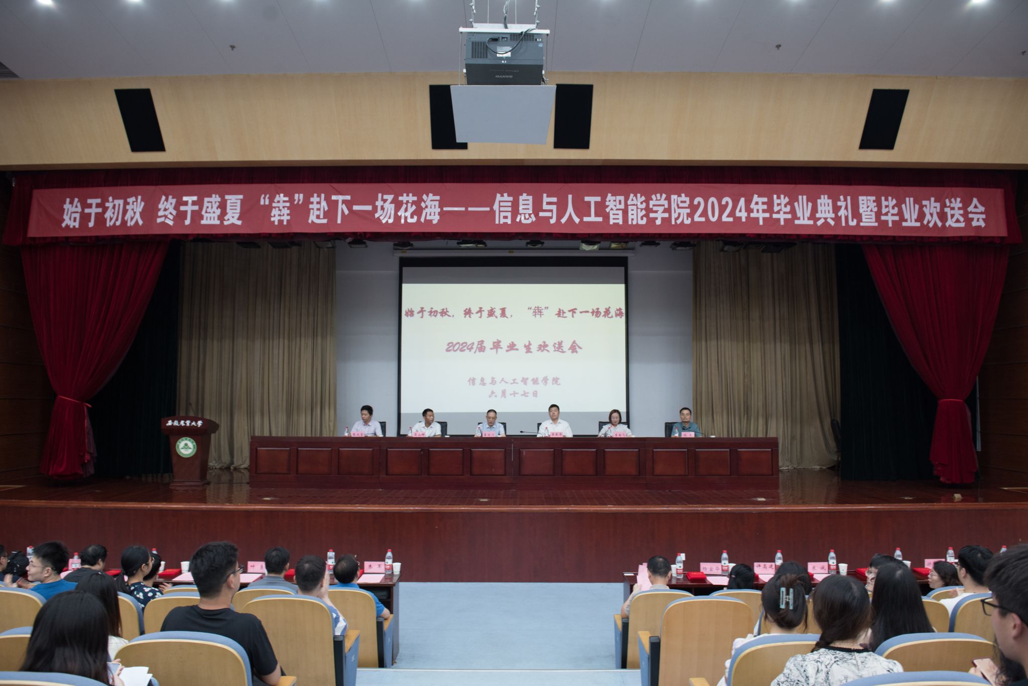 本网讯 6月17日上午,信息与人工智能学院在图书馆第一报告厅举办2024年毕业典礼暨毕业欢送会。学院党政领导、各系部负责人、教师代表、党政办公室人员、毕业班辅导员、毕业生代表和家长代表等参加典礼。学院党委副书记李南飞主持典礼。