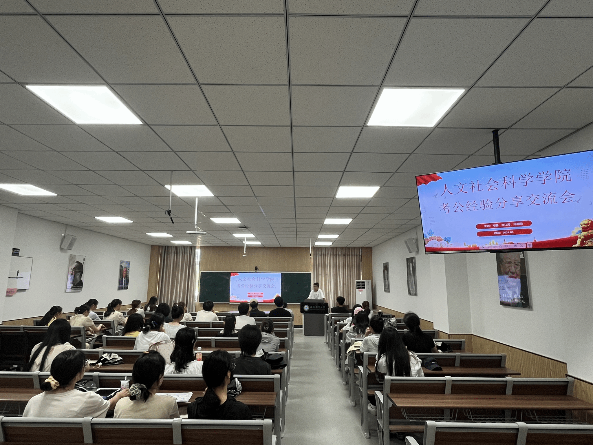 本网讯 6月16日上午,人文社会科学学院举办毕业生公务员考试经验分享会,2024届考公上岸的毕业生李江涛、邓鹏、汤润阳分享了公务员考试的宝贵经验。学院毕业班辅导员、2025届备考毕业生参加此次会议。