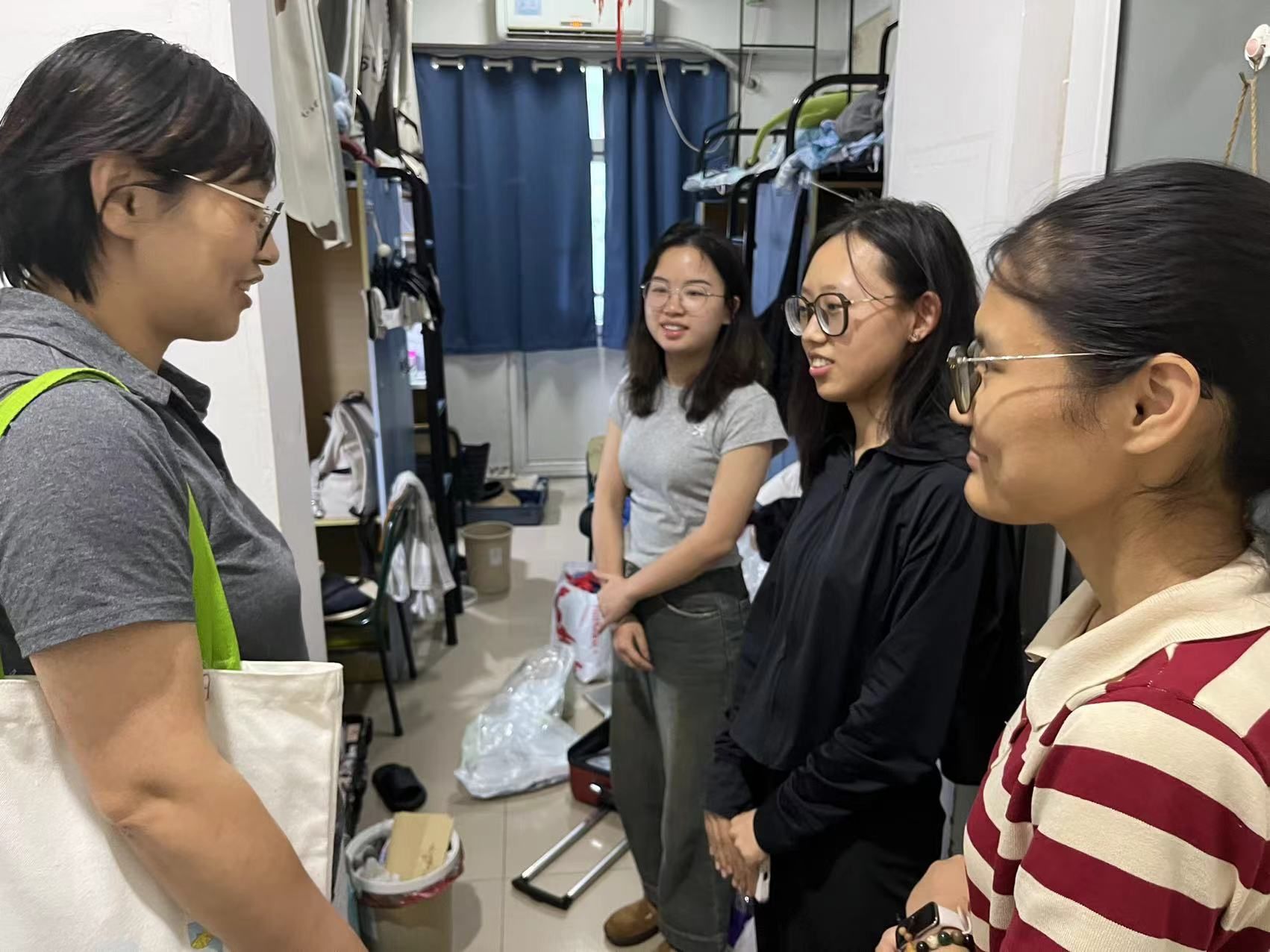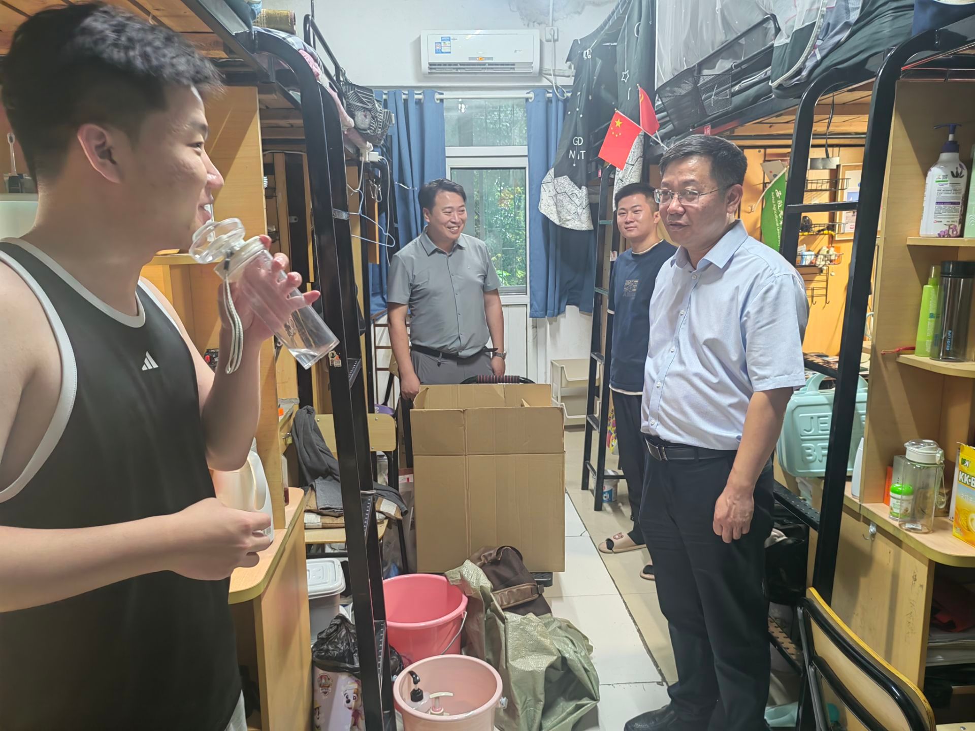 “防诈APP下载了没有呀?”“宿舍这块有没有遇到什么困难需要学院帮忙解决的呀?”走进非毕业班宿舍,学院领导、老师们就安全工作,提醒同学们做好防诈骗、用电、交通、财产、实验室安全防范;深入了解了同学们的学风、班风、考风情况,着重强调要诚信考试;认真听取了同学们关于教学、科研、日常管理等意见建议,并一一作了答复。