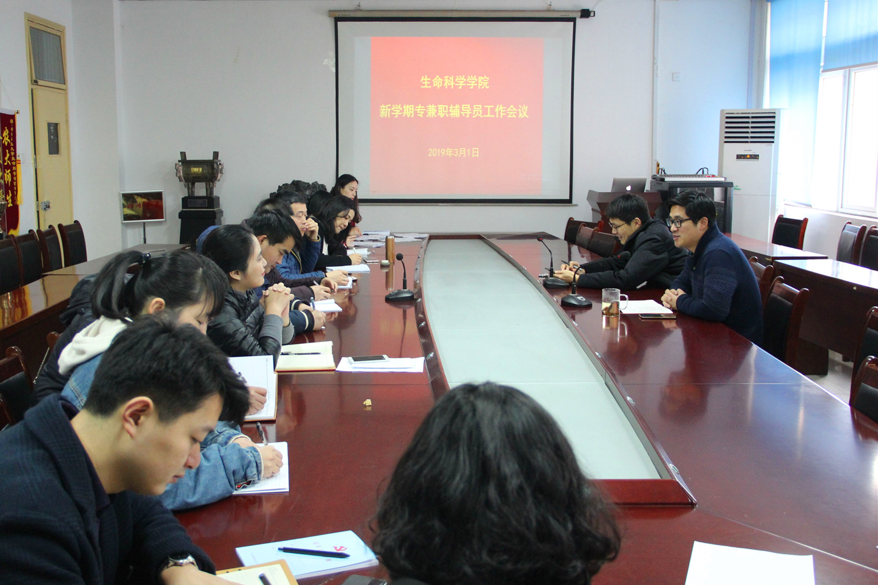 本网讯 3月1日上午,生命科学学院组织全体专兼职辅导员召开专题工作会议讨论布置新学期重点工作。学院党委书记张健以2017级生物类创新实验班辅导员身份出席此次会议,全体专兼职辅导员参加会议,会议由学院党委副书记、副院长吴国卿主持。