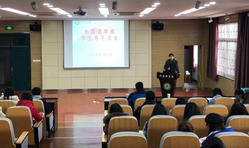 本网讯 3月3日下午,外国语学院学生骨干大会在外语楼502教室召开。学院党委副书记黄庆华、院两办老师和全体学生骨干等参加了此次会议。