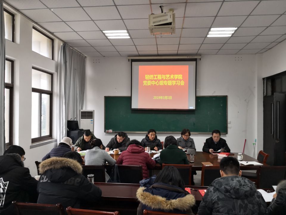 本网讯 3月1日下午,轻纺工程与艺术学院在院会议室召开党委中心组(扩大)专题学习会议。学院党委中心组成员、各支部书记和支委参加会议。会议由院党委书记王冬平主持。