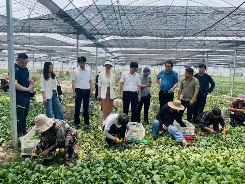 调研团先后来到阅览田下农业科技有限公司设施小白菜标准化保供基地、沃之佳农业发展有限公司果菜薯立体化种植基地、宝城智汇农业有限公司智汇方舱菌菇产业园、三杰家庭农场鲜食毛豆种植基地、赢财牛农业科技发展有限公司、皖北优质农产品供应链选品中心以及双涧镇马洼村、板桥集镇双鹿村、庄周街道王桥社区等地,对蒙城县发展农业新质生产力、蔬菜产业科技赋能、园艺领域产学研用合作、校县“三区”人才建设等开展调研、科技帮扶和现场指导。园艺学院与蒙城县蔬菜产业发展全面对接达成进一步合作意向。