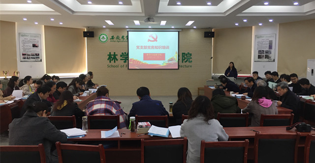 本网讯 3月15日,林学与园林学院召开党务骨干培训会议,学院党政领导、教职工党支部支部委员和学生党支部支部委员列席了会议。学院党委书记唐红萍主持会议,并为学院党务骨干们作了一次意义的培训报告。