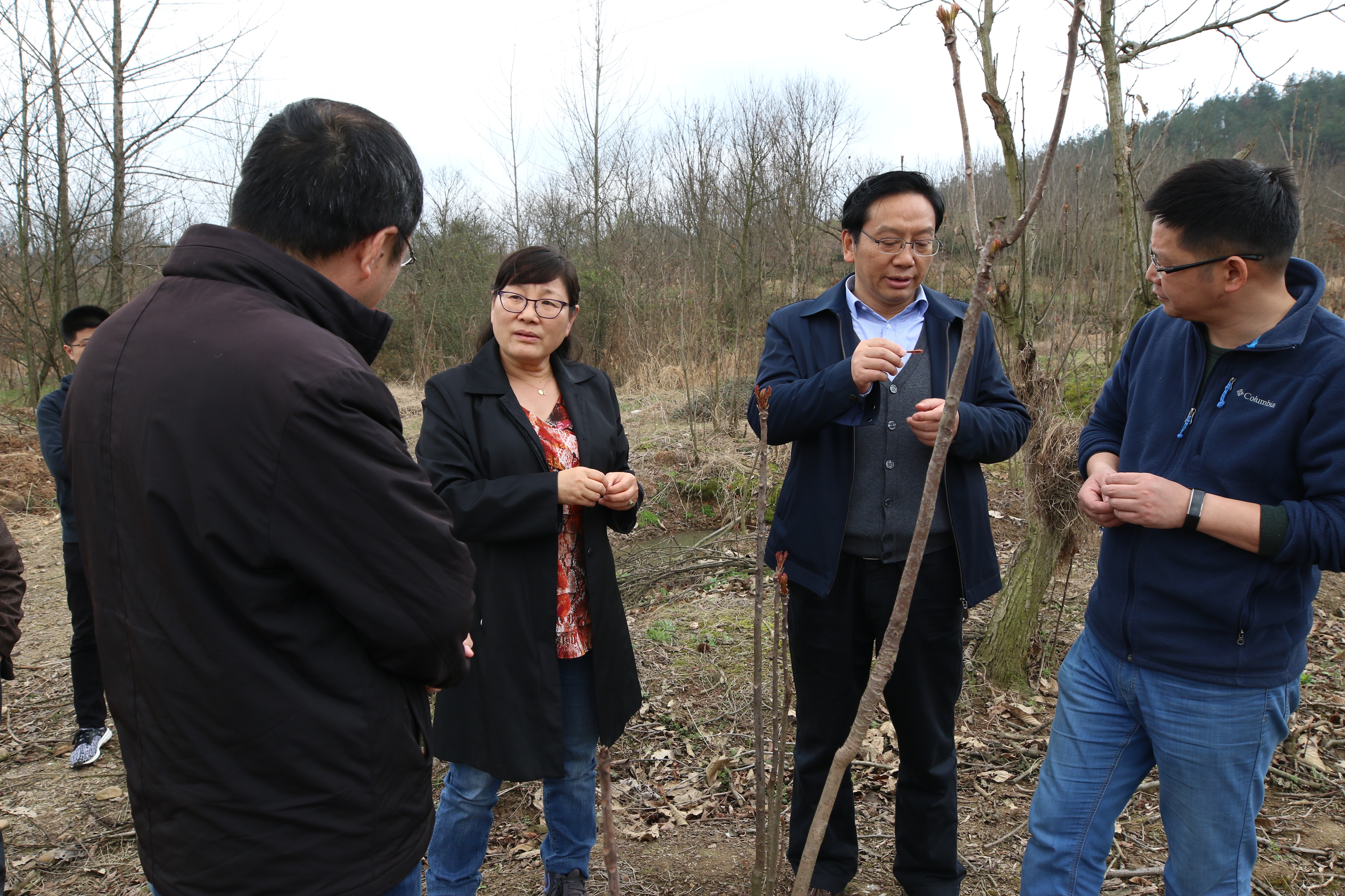 本网讯 3月18日上午,林学与园林学院院长刘盛全带领学院相关师生前往舒城县阙店乡转水湾村进行香椿育苗及栽培技术指导。